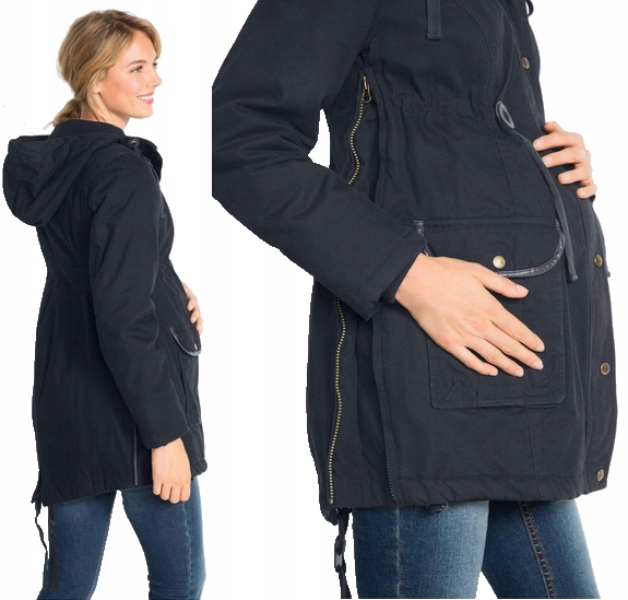 Informacje dodatkowe: Parka ciążowa z tunelem w talii do regulacji obwodu i zamkami w szwach bocznych, dzięki czemu będziesz ją mogła nosić przez całą ciążę.