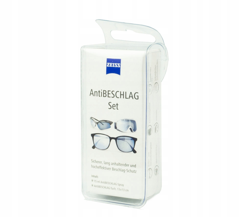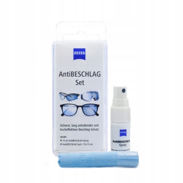 Najwyższej jakości zestaw przeciw parowaniu okularów. W skład zestawu wchodzi płyn przeciw parowaniu okularów oraz unikalna ściereczka przeciw parowaniu okularów. Zestaw renomowanej niemieckiej firmy Zeiss przeznaczony na rynek niemiecki. Może być stosowany nie tylko do okularów, ale też gogli, przyłbic, lornetek itp.