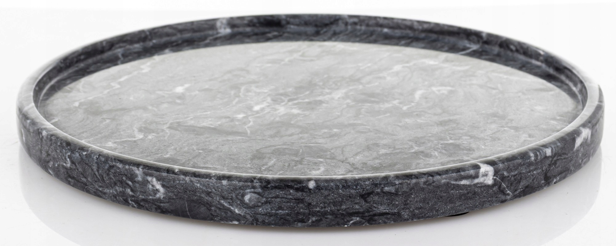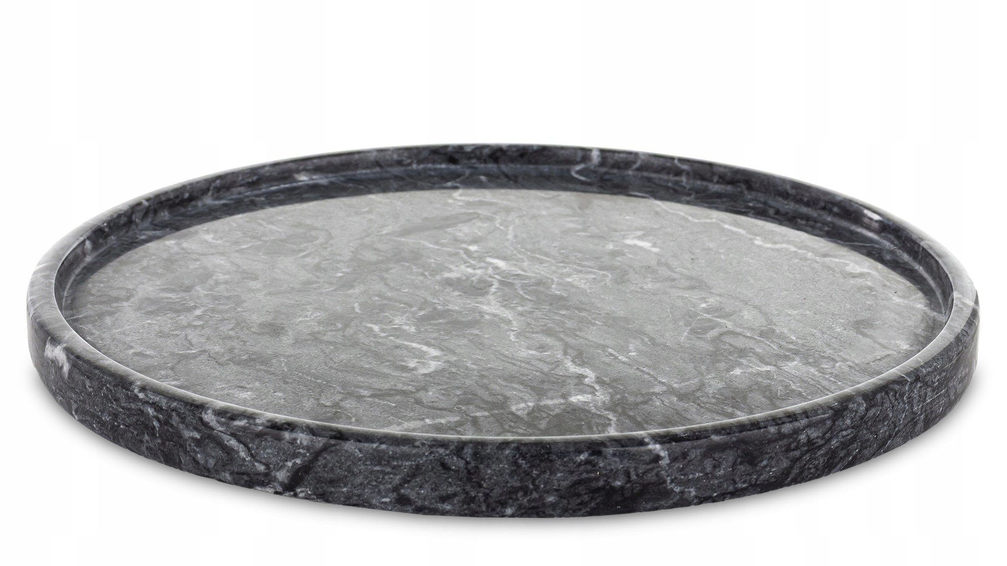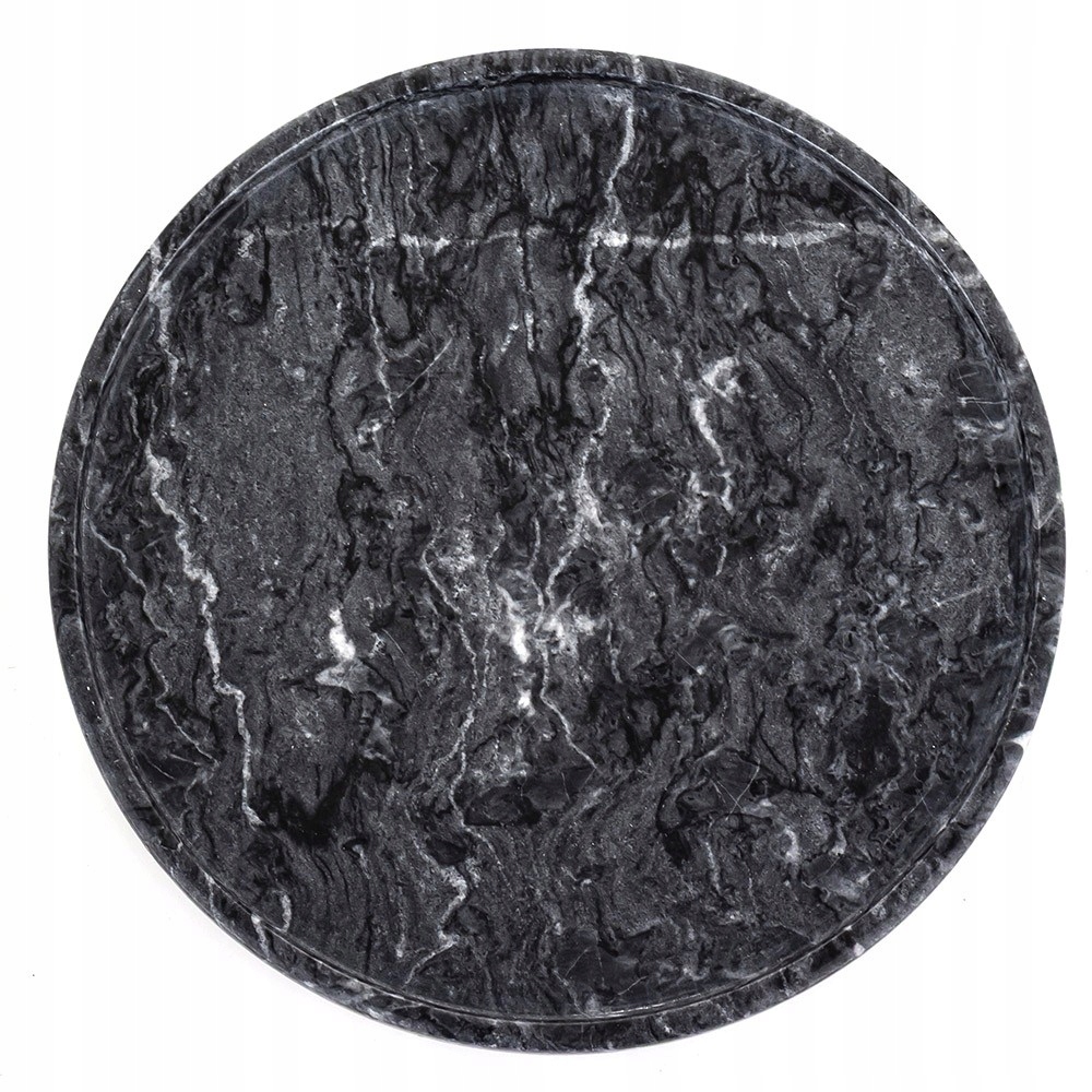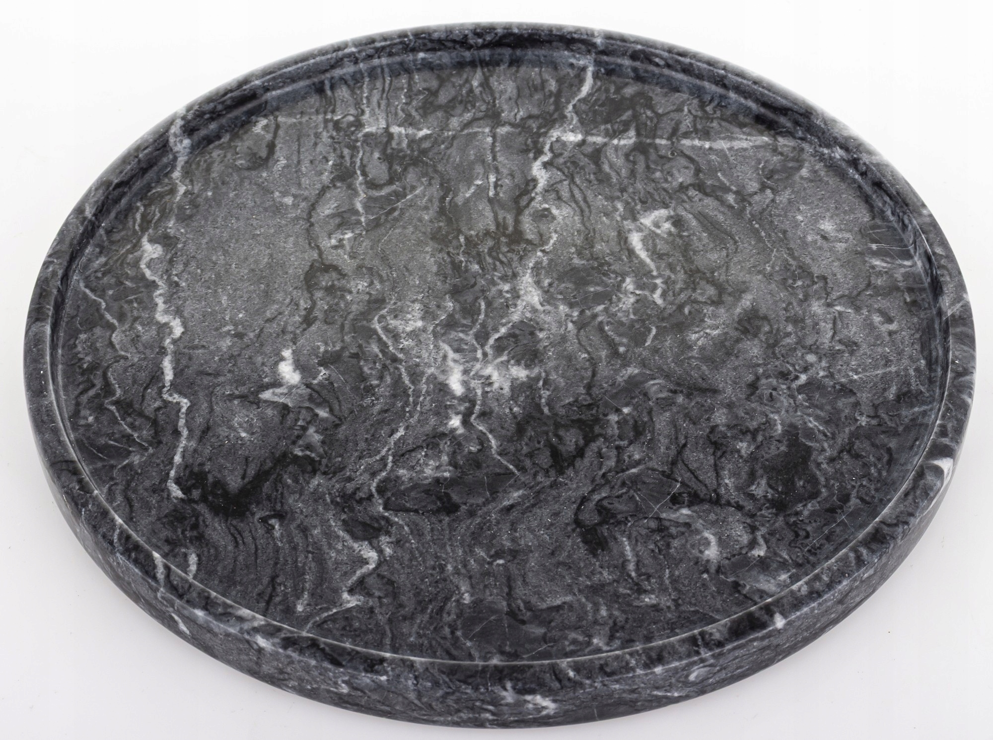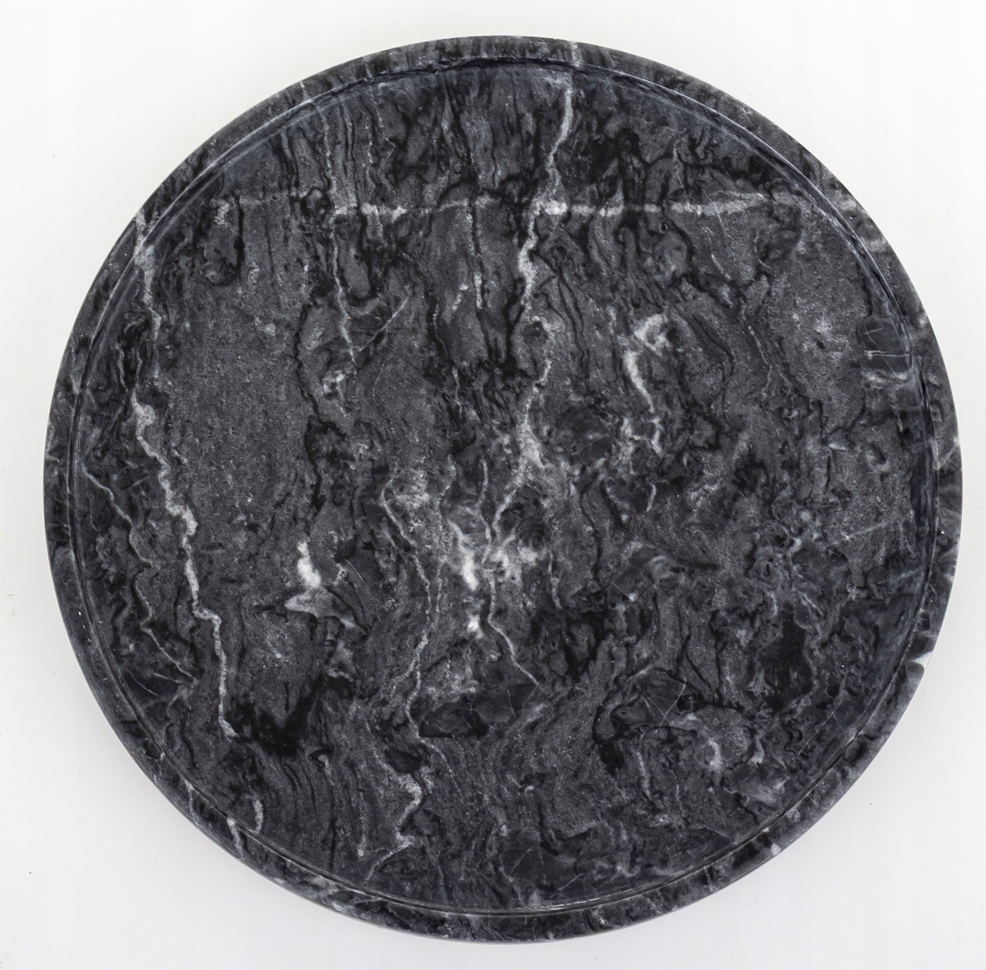 Taca marmurowa czarna / szara wykonana w bardzo oryginalny sposób. Jej okrągły kształt i nieregularna struktura kamienia stają się bardzo estetyczną pomocą kuchenną. Z pewnością pięknie będzie prezentowała się w Twojej kuchni, ale i również nada niepowtarzalnego uroku jako dekoracja w salonie czy jadalni. Idealna dla miłośników niecodziennych dekoracji.