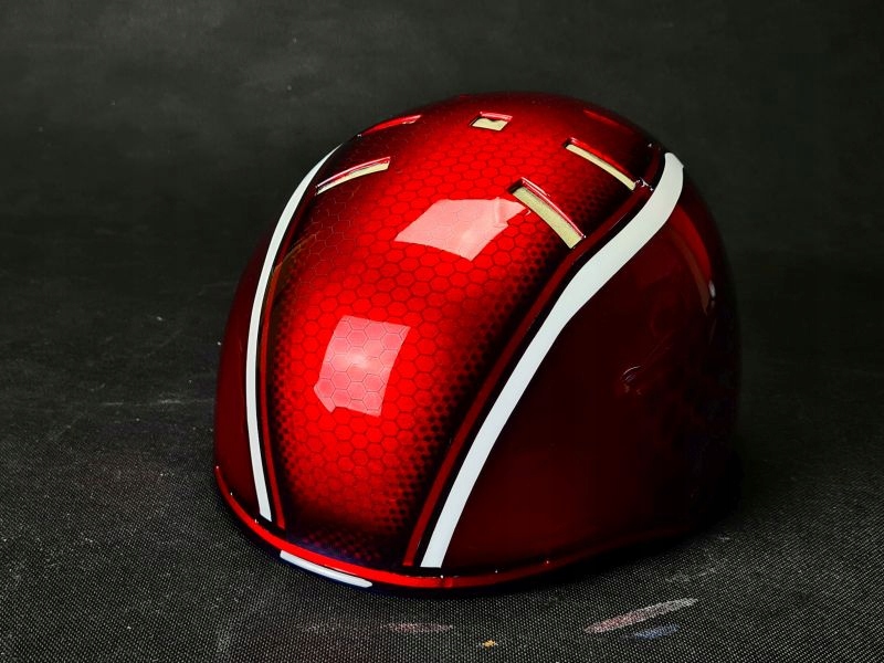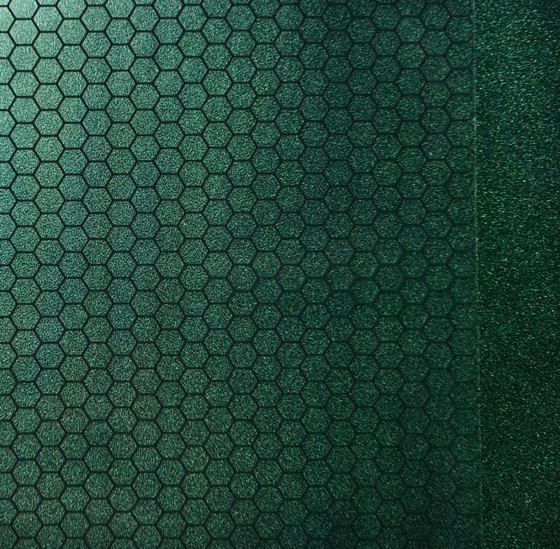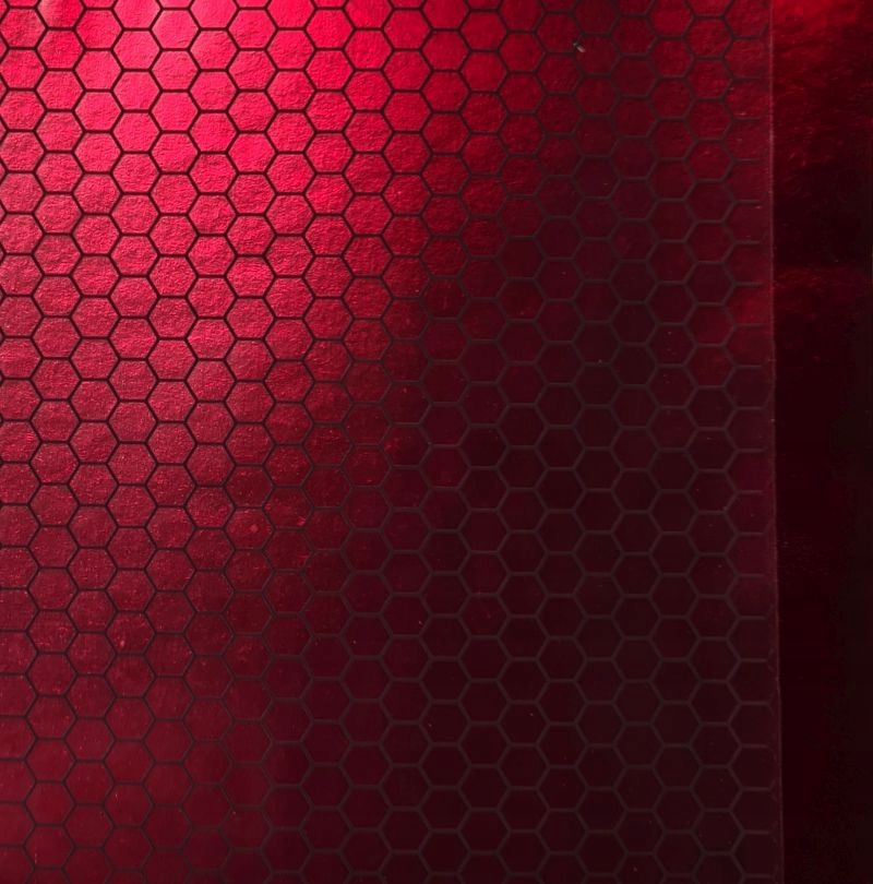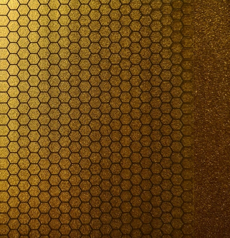 charakteryzuję się szaro-czarnym nadrukiem. Folia posiada designerski motyw strukturalny przypominający plaster miodu. Przez swoją transparentność folia pozwala na uzyskanie wiele możliwych efektów końcowych. Idealnie sprawdzi się z lakierami Candy. Przykładowy kask na zdjęciach w połączeniu z czerwonym candy apple red.