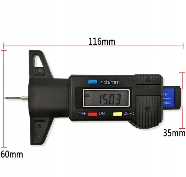 Wynik pomiaru może być podawany – w zależności od preferencji użytkownika - w milimetrach lub calach. Jednostka wyświetlana jest wraz z wynikiem.