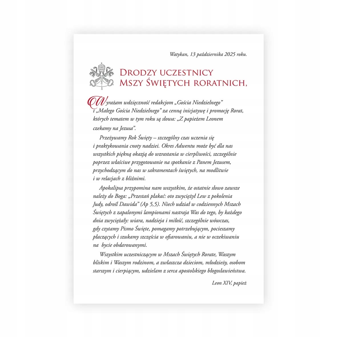 Название Sprawdziany adwentowe Roraty 2025 „Z papieżem Leonem czekamy na Jezusa” – materiały dla dzieci