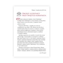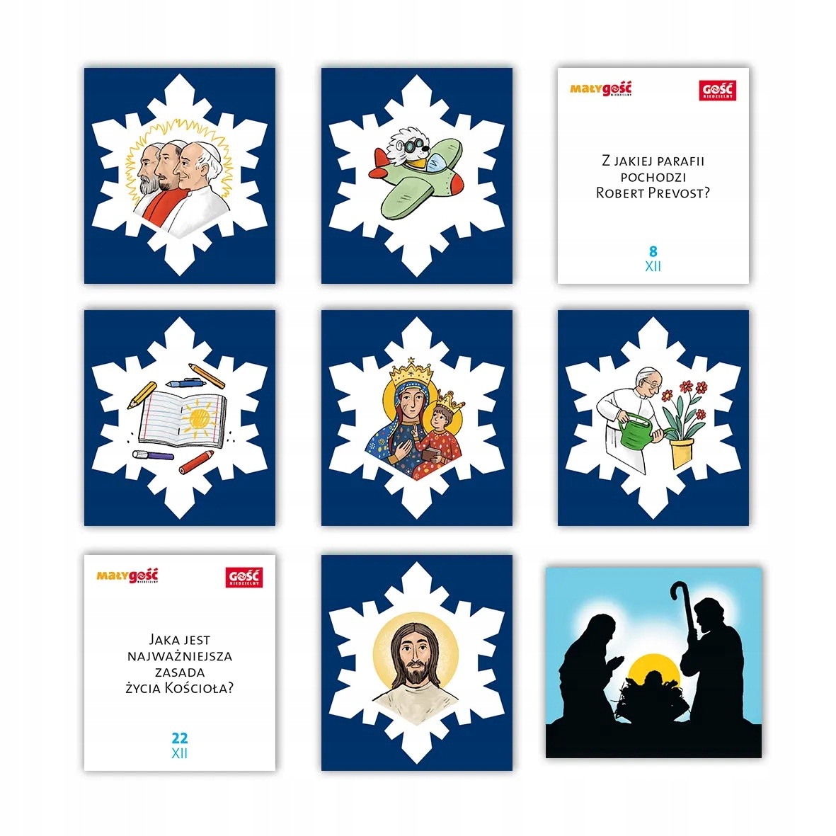 Komplet zawiera zestaw obrazków na każdy dzień rorat oraz plansze dla dzieci, na której w wyznaczonych miejscach będą przyklejać obrazki otrzymywane podczas Rorat każdego dnia Adwentu. Na odwrocie obrazków zostały wydrukowane zadania na poszczególne dni Rorat.