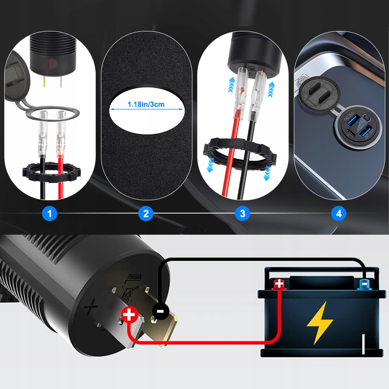 ✅Ładowarka USB jest wykonana z żaroodpornego i odpornego na ścieranie stopu aluminium. Certyfikowany przez CE i ROHS z ochroną przed przeciążeniem, przetężeniem i zwarciem, aby zapewnić bezpieczeństwo ładowania. Wbudowany inteligentny układ scalony zapewnia, że obwód nie zostanie spalony w przypadku nieprawidłowego okablowania. Stopień wodoodporności IP65, dobrze sprawdza się na morzu, łodzi i motocyklu.