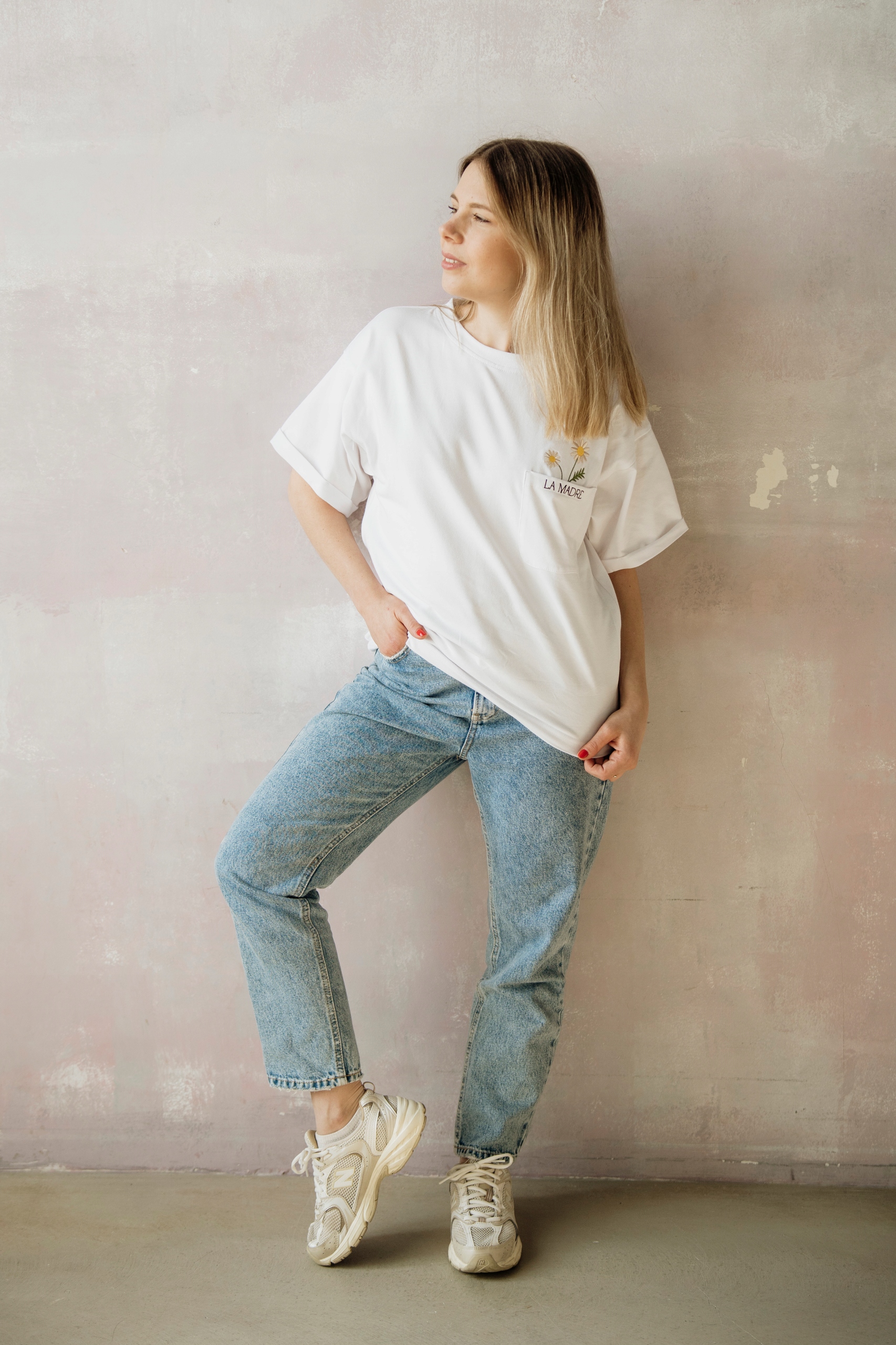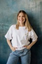 Koszulka na krótki rękaw z przewiewnej i miłej w dotyku bawełny. Po lewej stronie przydatna kieszonka z której wystaje piękna haftowana stokrotka. Po bokach koszulki znajdują się ukryte suwaki, które są niezastąpione przy codziennym karmieniu dziecka.