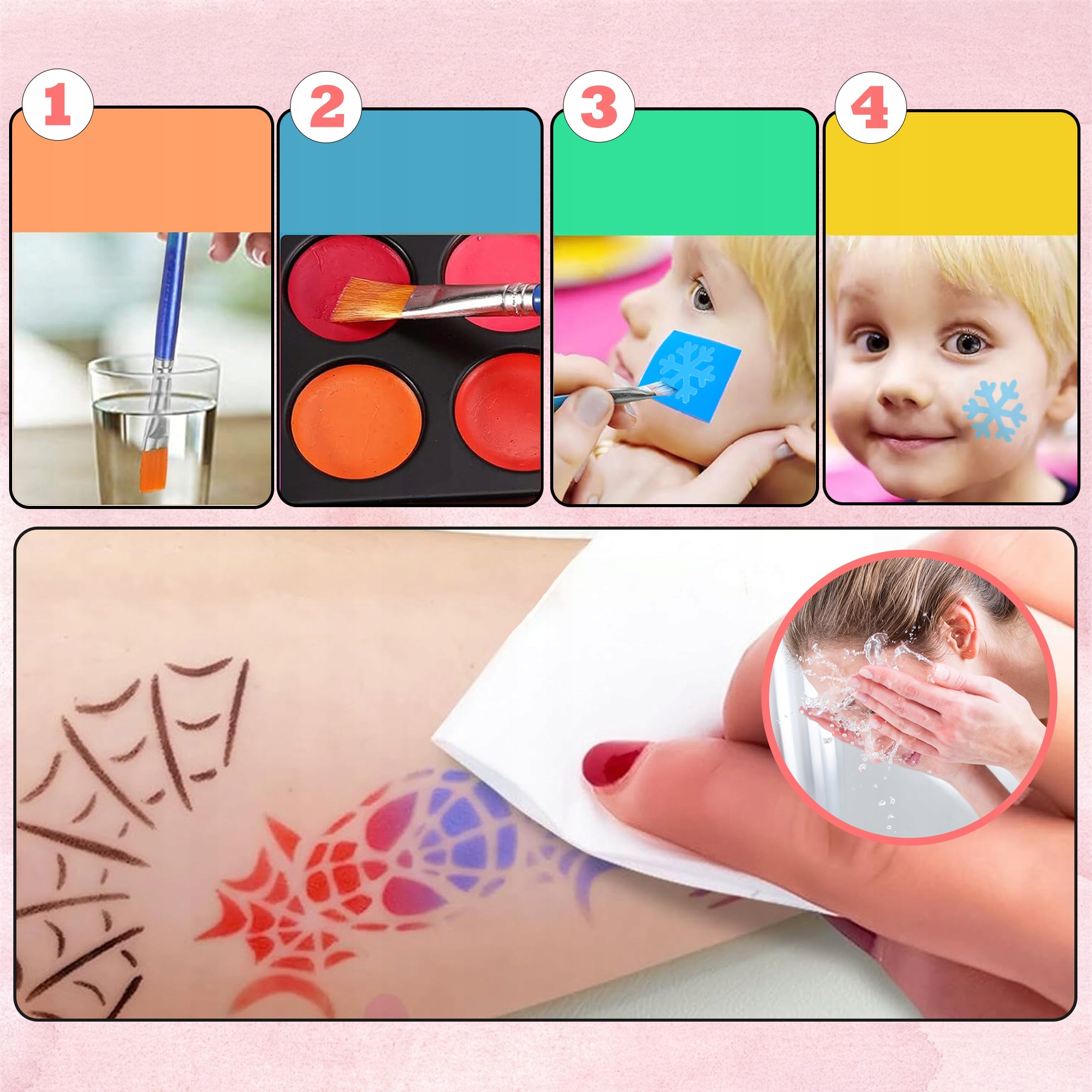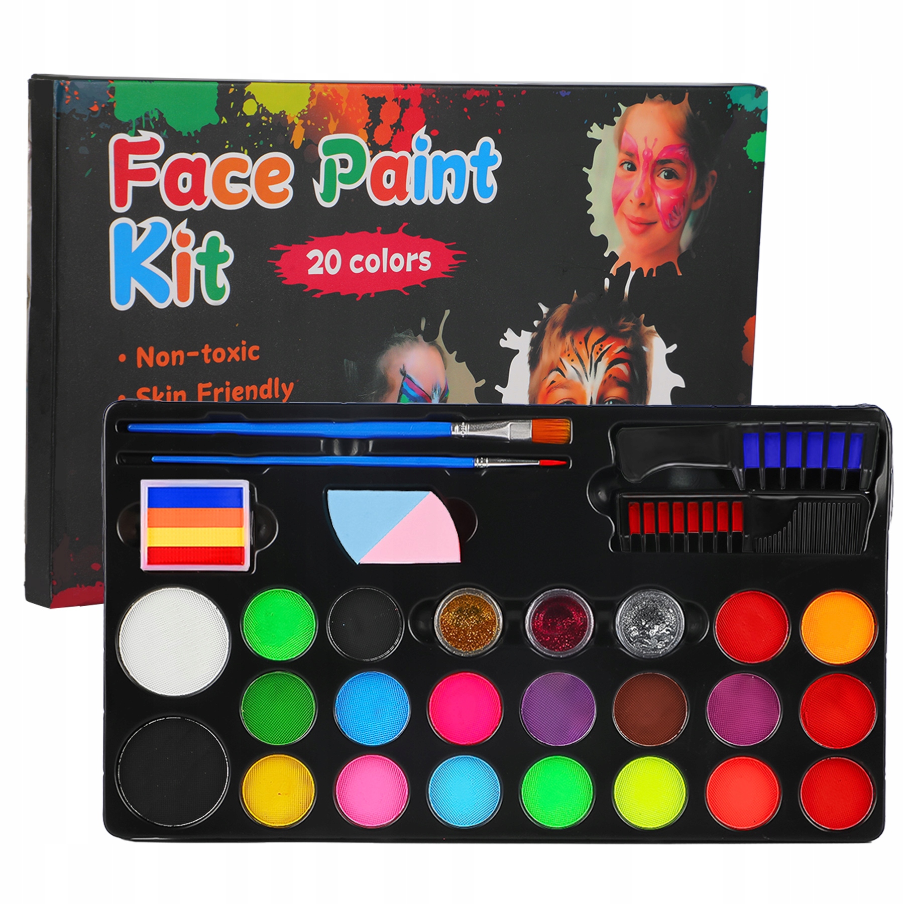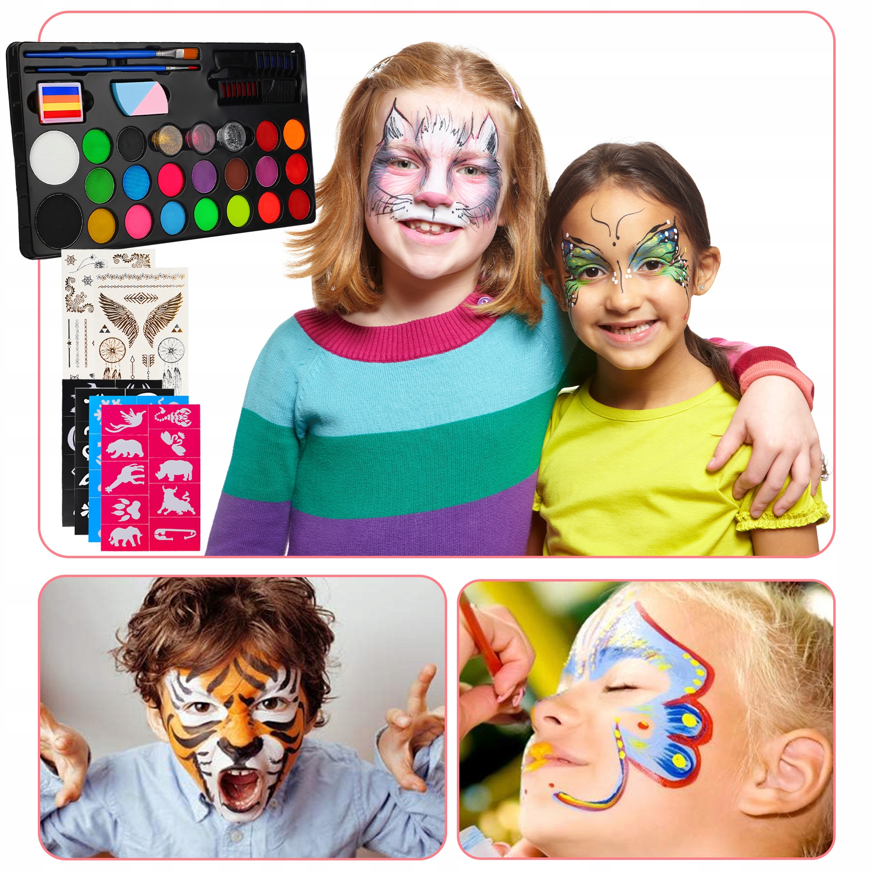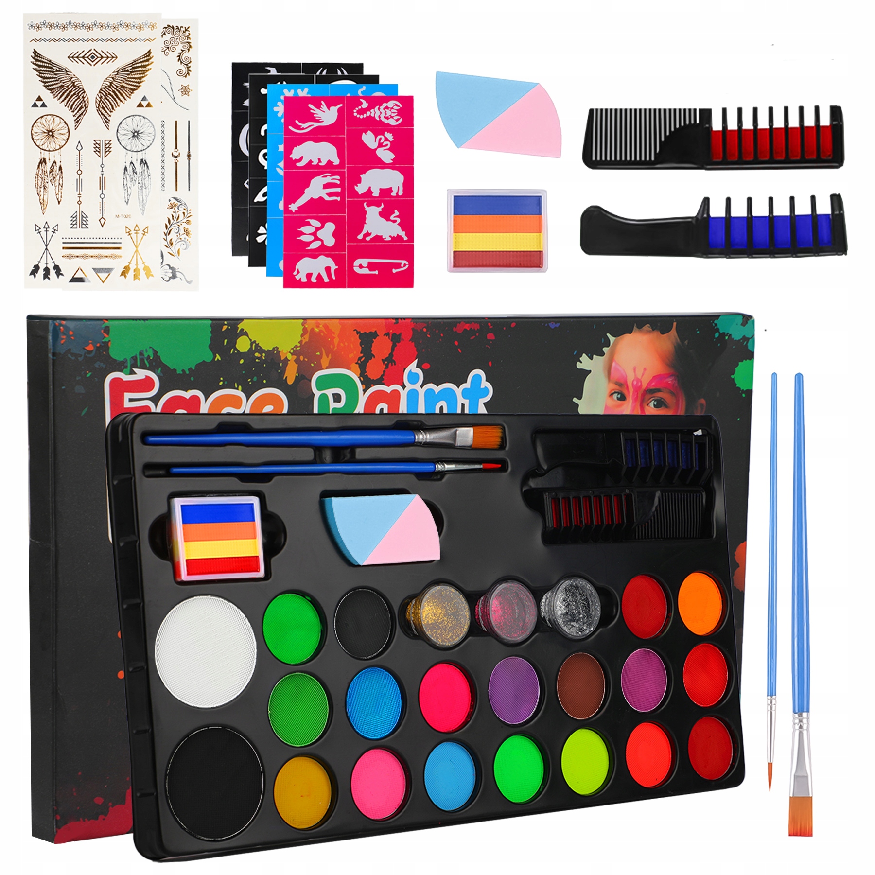 Ten zestaw zawiera wszystko, czego potrzebujesz, aby pomalować twarze swoich dzieci.