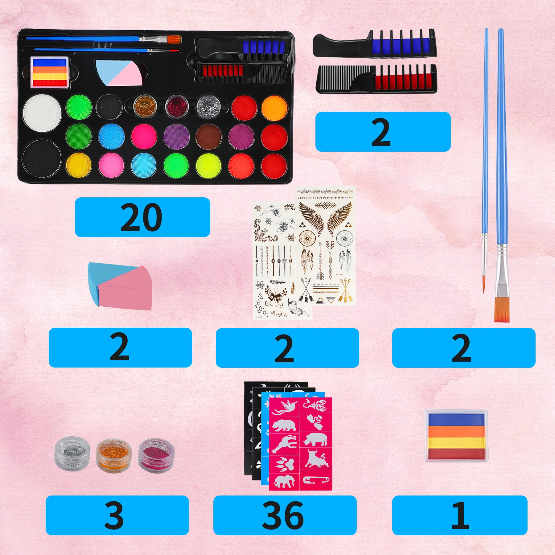✔️Nasz zestaw do makijażu dla dzieci zawiera 20 kolorów do makijażu,