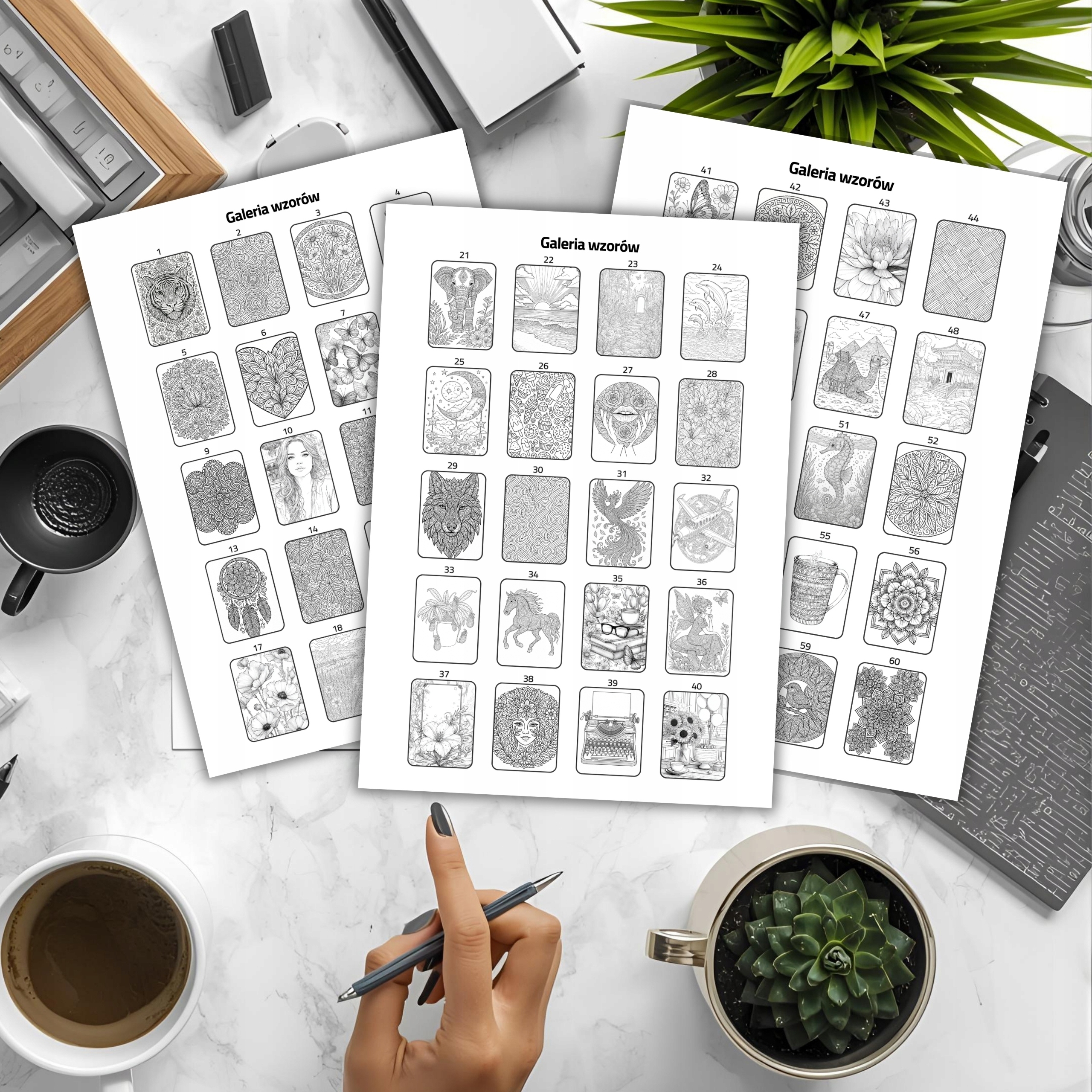 W kolorowance znajduje się galeria wzorów, czyli miniaturki grafik ułatwiające wybór i znalezienie odpowiedniej ilustracji.