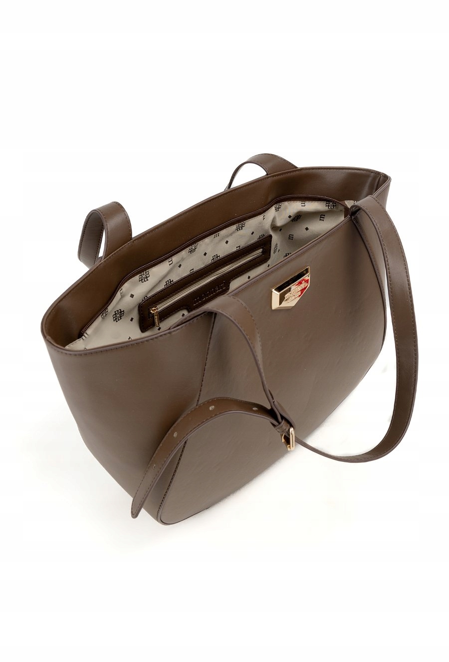 Torba damska z kolekcji Premium. Jednokomorowy model z jasną, logowaną podszewką oraz praktycznymi kieszonkami na drobiazgi. Torba zawieszona na rączkach z możliwością regulacji, co zapewnia komfort noszenia.
