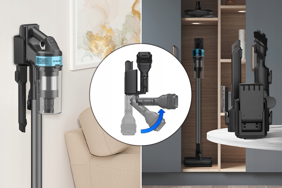 Sprzątanie domu bez wysiłku dzięki łatwemu manewrowaniu i obsłudze. Lekka konstrukcja zapewnia maksymalną użyteczność i zmniejsza obciążanie nadgarstków. Korpus odkurzacza ręcznego waży zaledwie 1,44 kg i jest o 11% lżejszy od konwencjonalnych odkurzaczy Samsung. Można więc łatwo posprzątać wszystkie pomieszczenia, w tym krzesła i sofy, szafki i stoły, rolety okienne oraz powierzchnie pod urządzeniami domowymi, jak również schody.