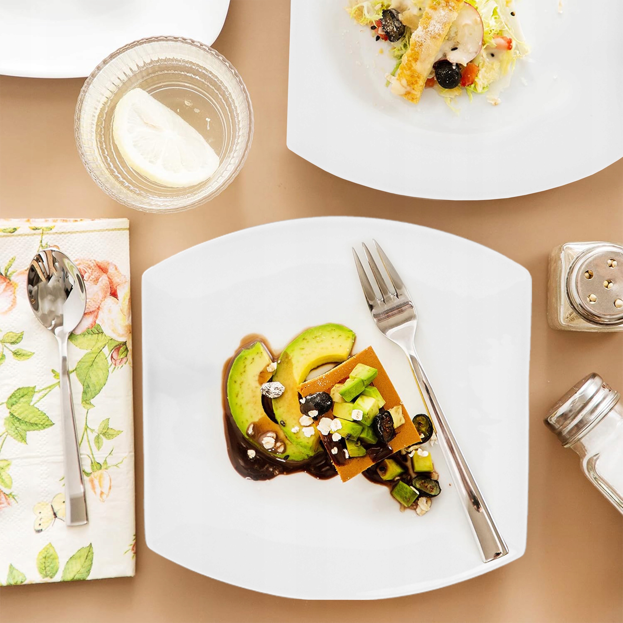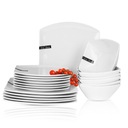 ✨ Elegancki, kwadratowy zestaw obiadowy składający się z 18 elementów. Komplet wykonany z wysokiej jakości porcelany dla 6 osób. Klasyczna biel w nowoczesnej, geometrycznej formie nadaje stołowi wyjątkowego charakteru i elegancji, idealnej zarówno na co dzień, jak i na specjalne okazje.