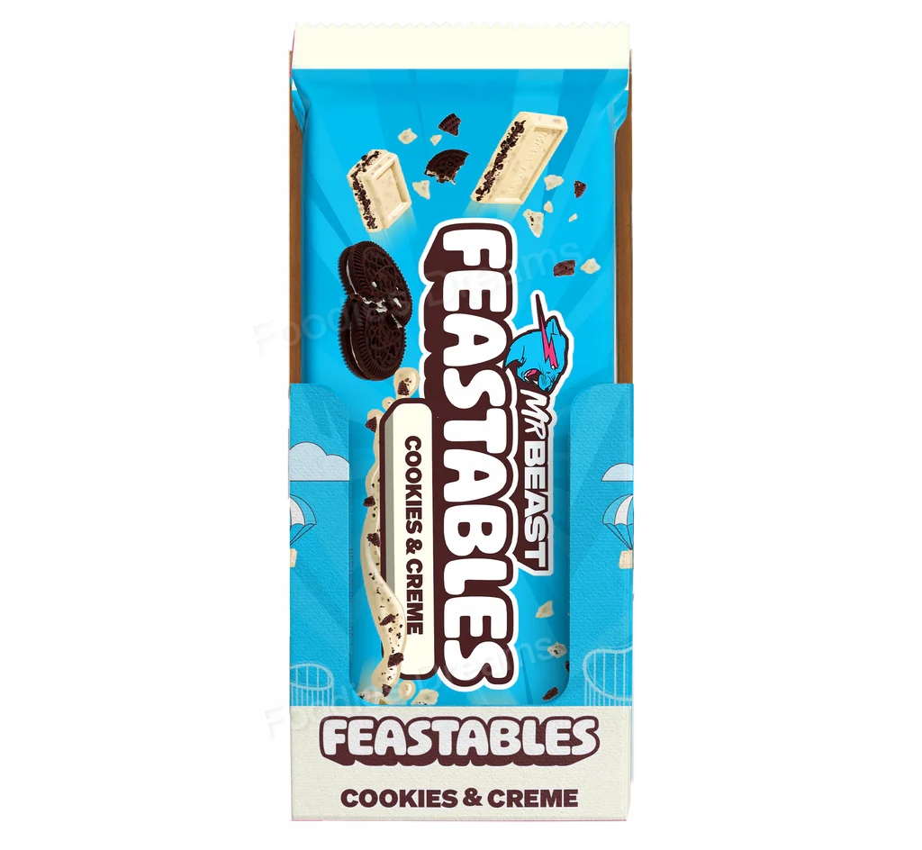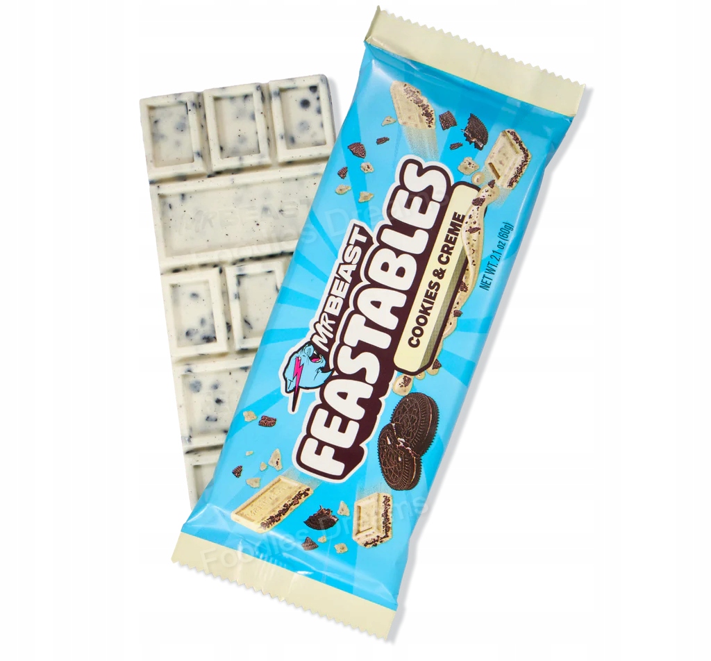 Poczuj słodką magię w każdej kostce! Ta tabliczka to połączenie aksamitnej, białej czekolady z chrupiącymi kawałkami ciasteczek – smak, który zachwycił każdego fana słodkości i... samego MrBeasta!