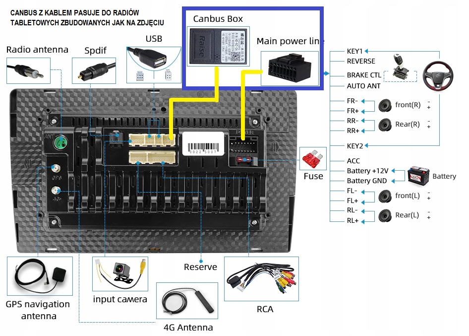 Canbus jest pasywny, nie wymaga wejść TX/RX w radiu zamiennym