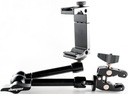 Uchwyt na smartfona jest wykonany z wytrzymałego stopu aluminium. Jego rozmiar to 28 cm, a waga to tylko 450 g.
