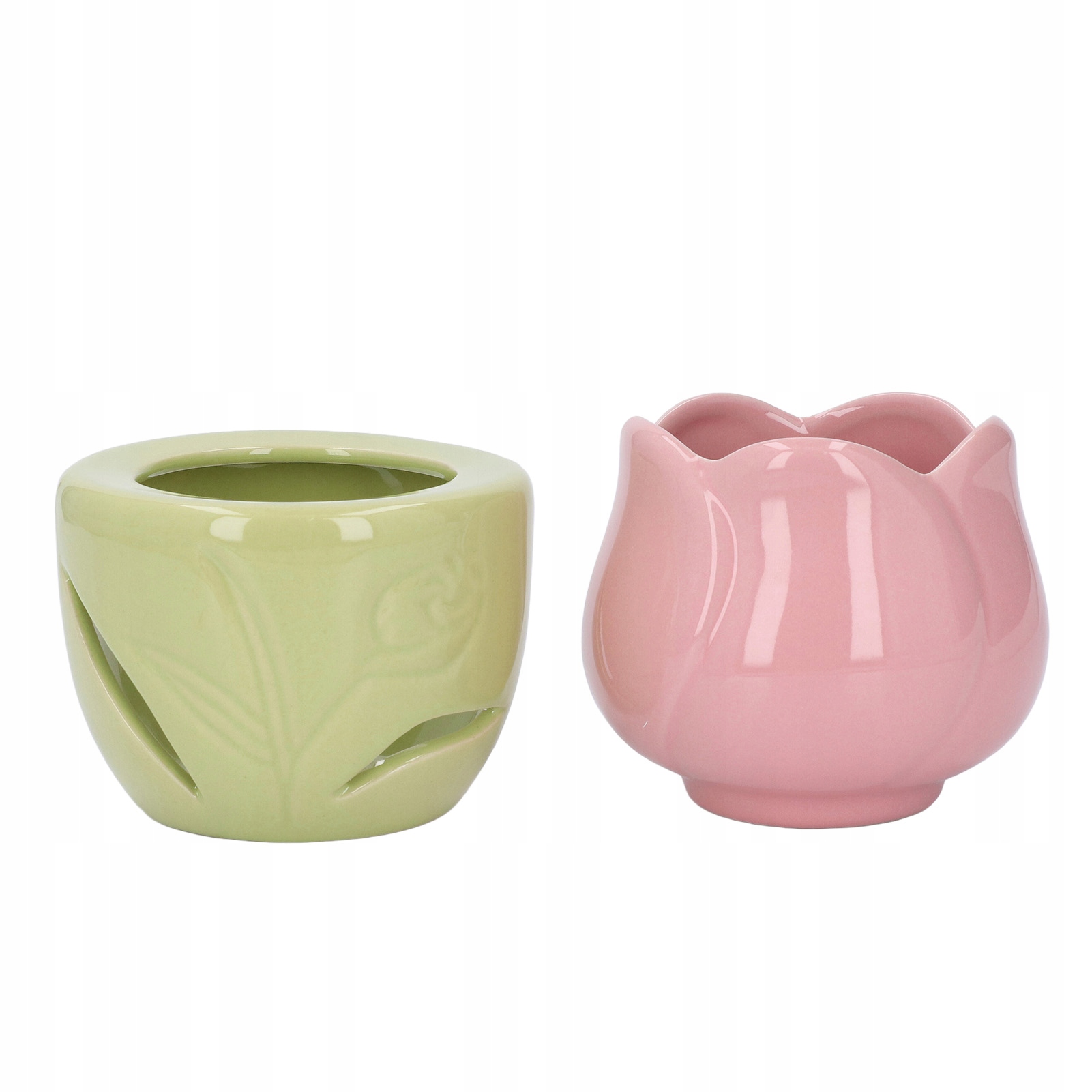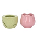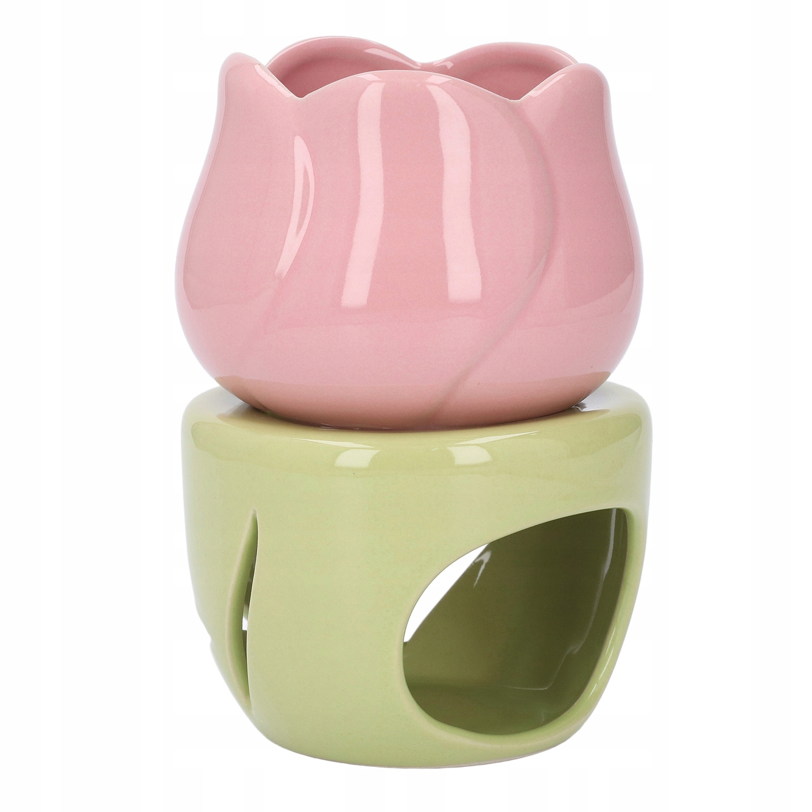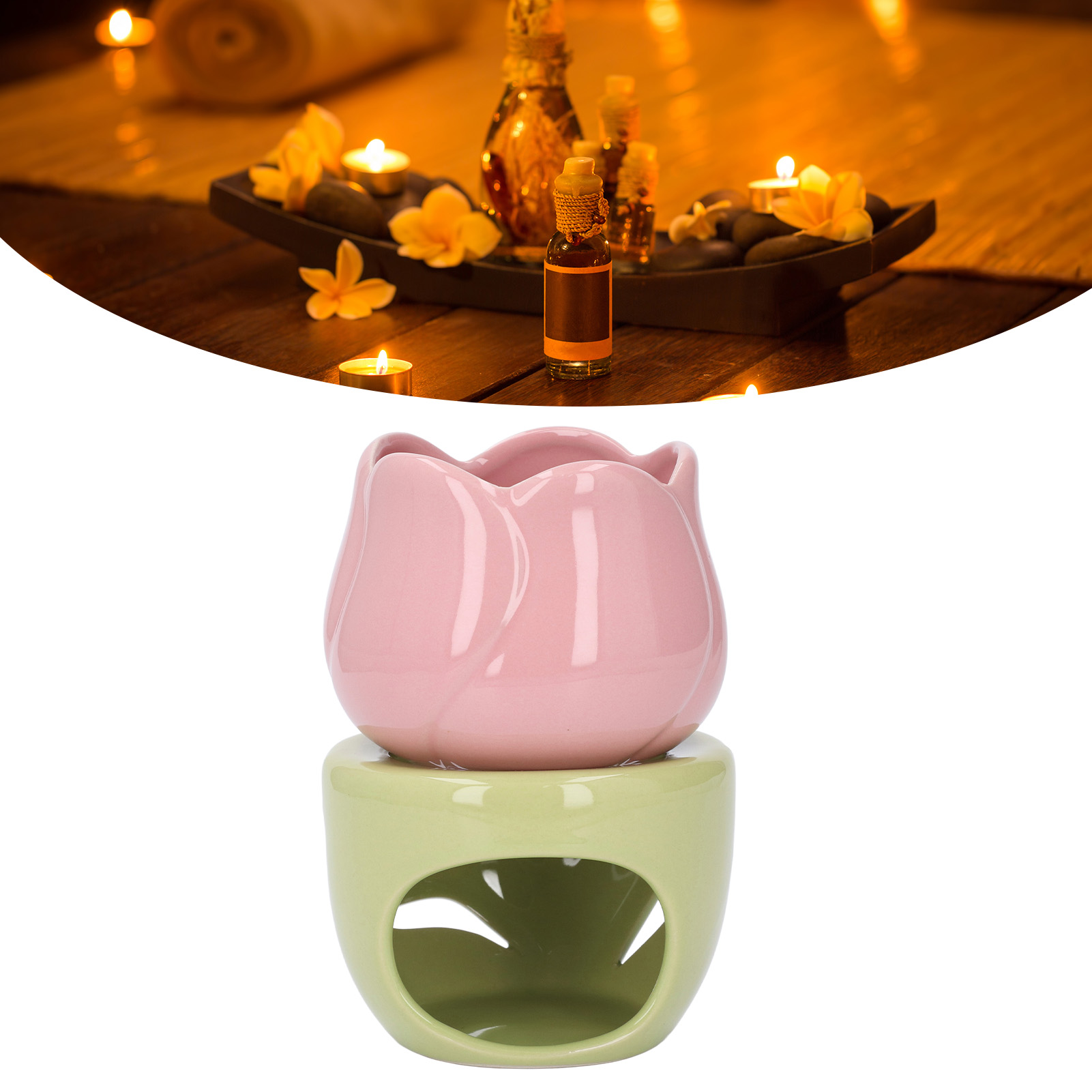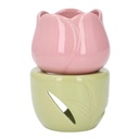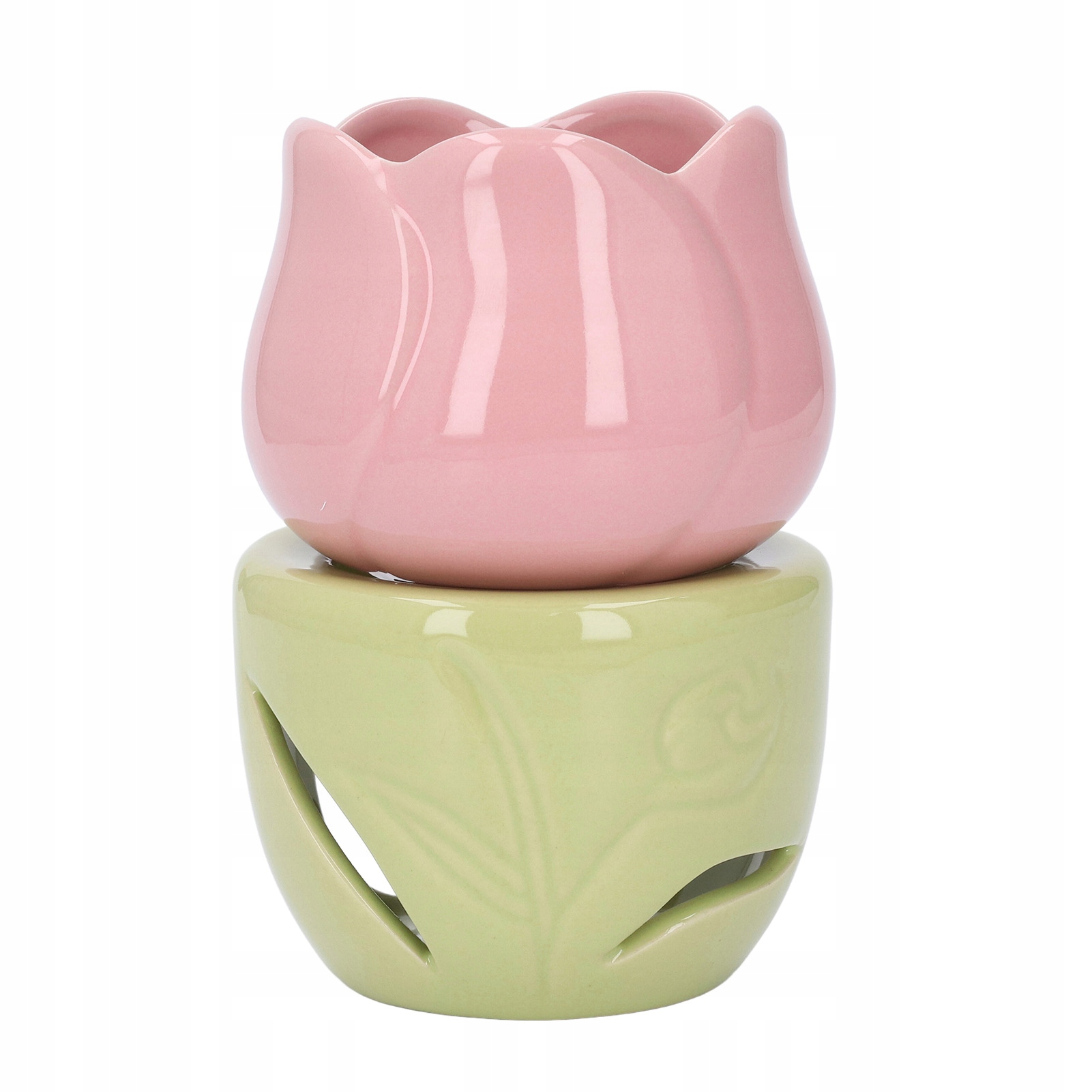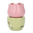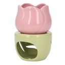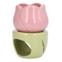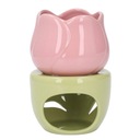 Ceramiczny palnik do aromaterapii w kształcie różowego kwiatu z zielonym stojakiem Świecznik na tealighty Palnik na olejki eteryczne