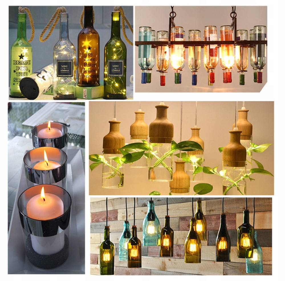 【Kreatywność DIY i ochrona środowiska】: Za pomocą obcinaczy do szklanych butelek możesz tworzyć łatwe w wykonaniu dekoracje. W Twojej sypialni, ogrodzie lub na balkonie, nasz obcinacz do butelek pomoże Ci stworzyć wspaniałe projekty, w tym lampy i wazony. , szklanki i doniczki dodają Twojemu domowi piękna, funkcjonalności i uroku.