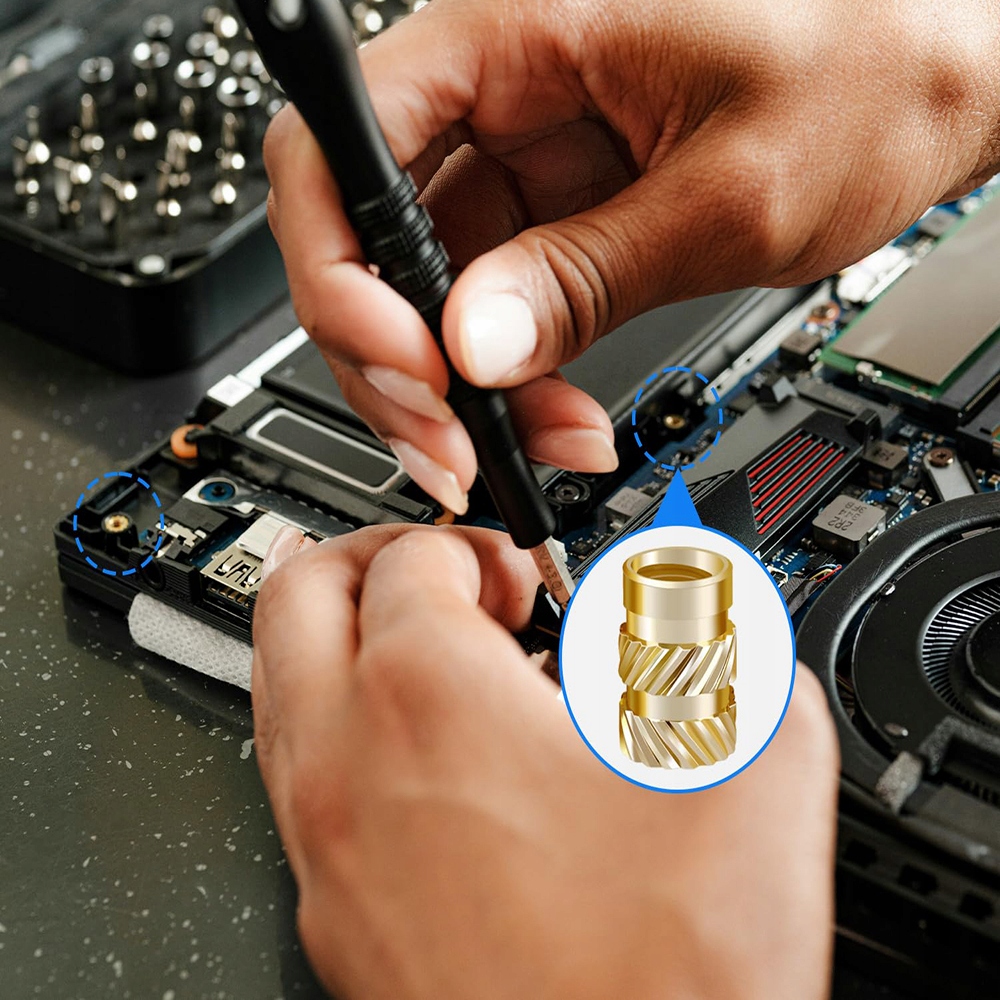 ⑤Precyzyjne krętki radełkowane: Nakrętki wciskane z mosiężnymi wkładkami mają bardzo precyzyjny gwint, kompatybilne z odpowiednimi śrubami, gładkie i wolne od zadziorów powierzchnie, okrągły standardowy kształt, mocny i płaski, łatwy w montażu.