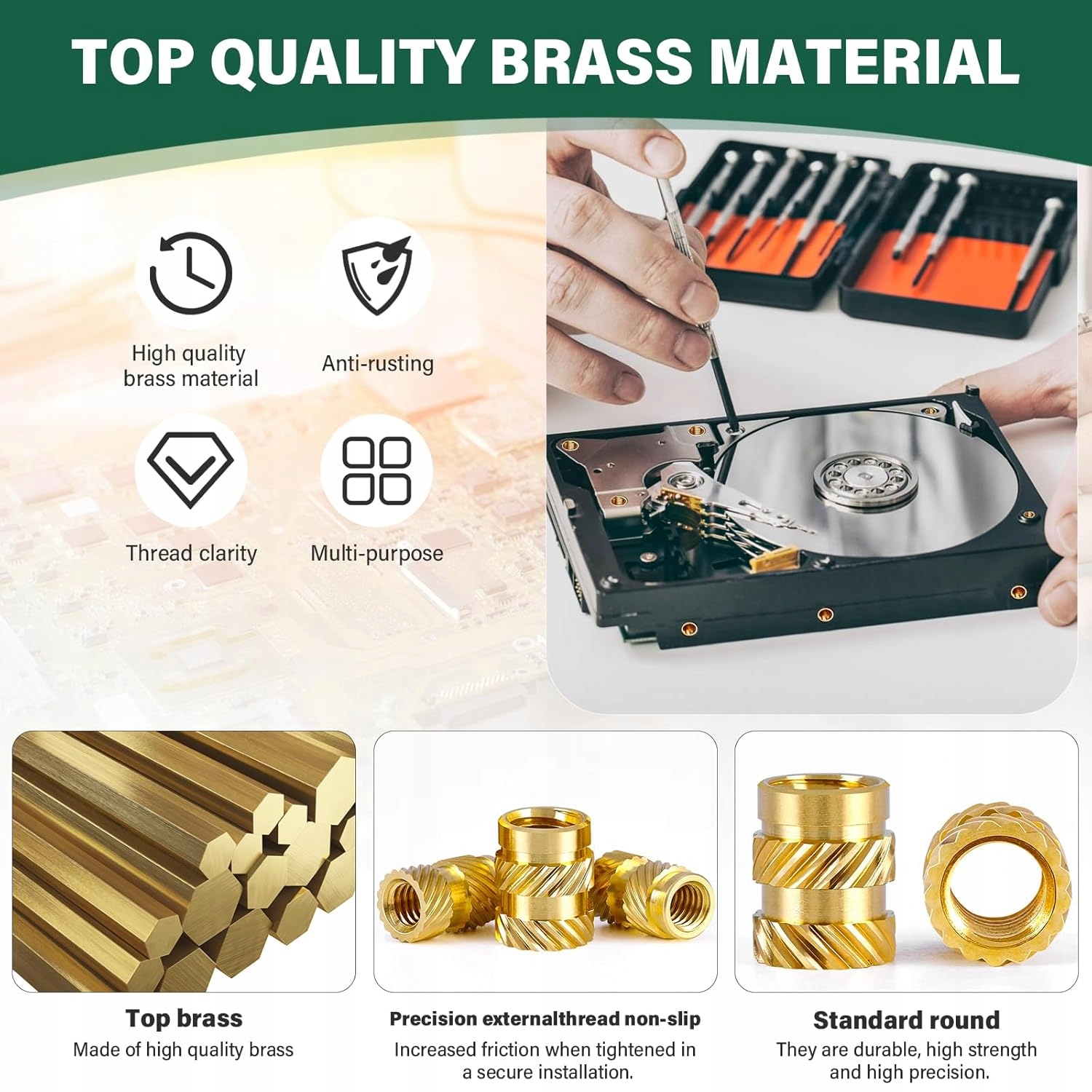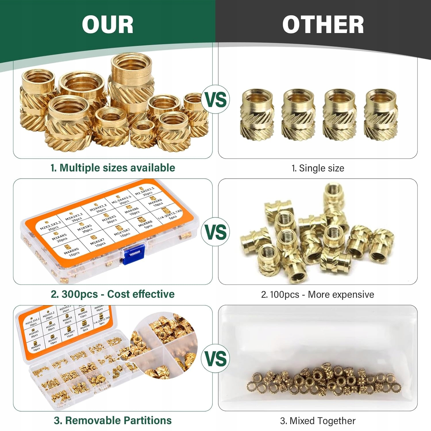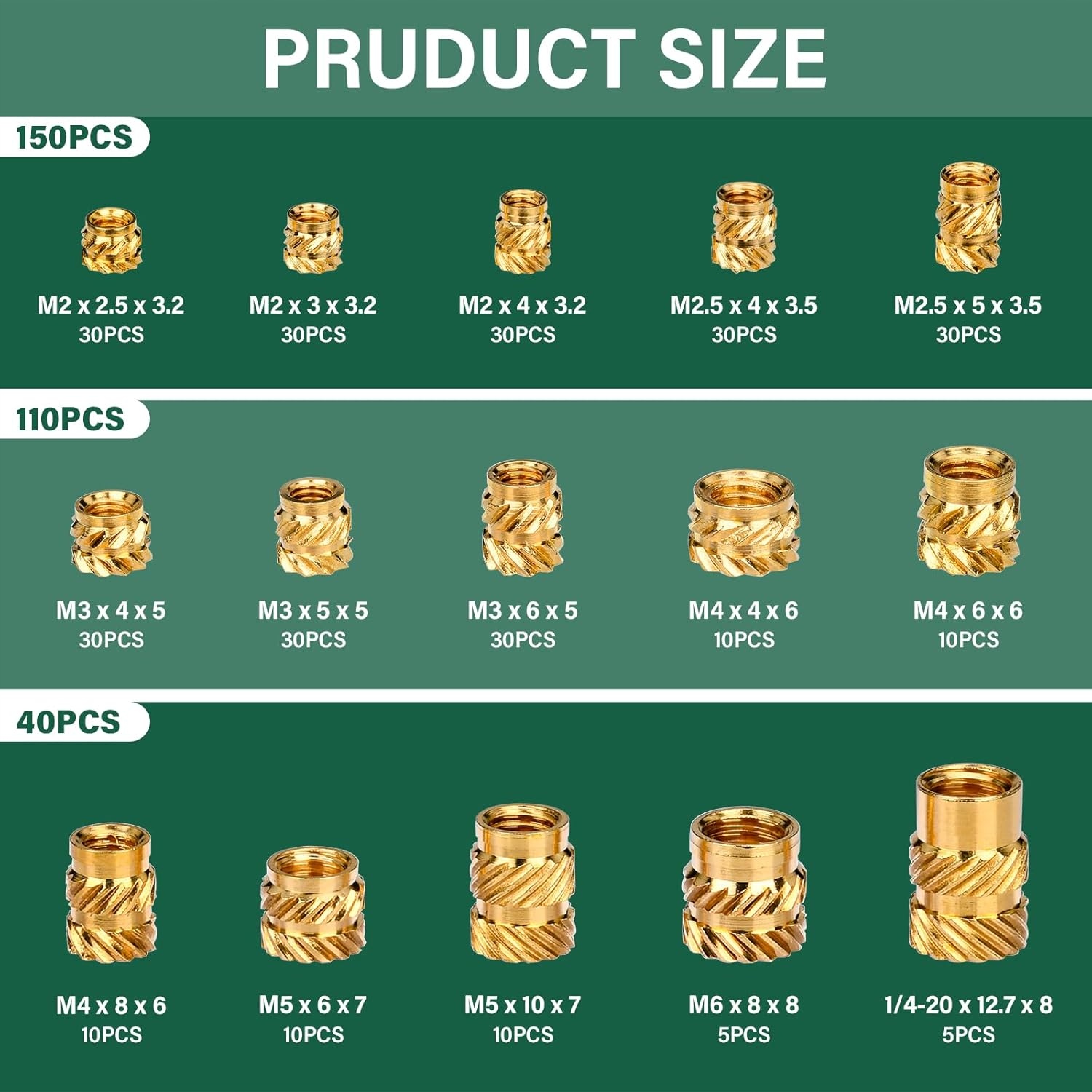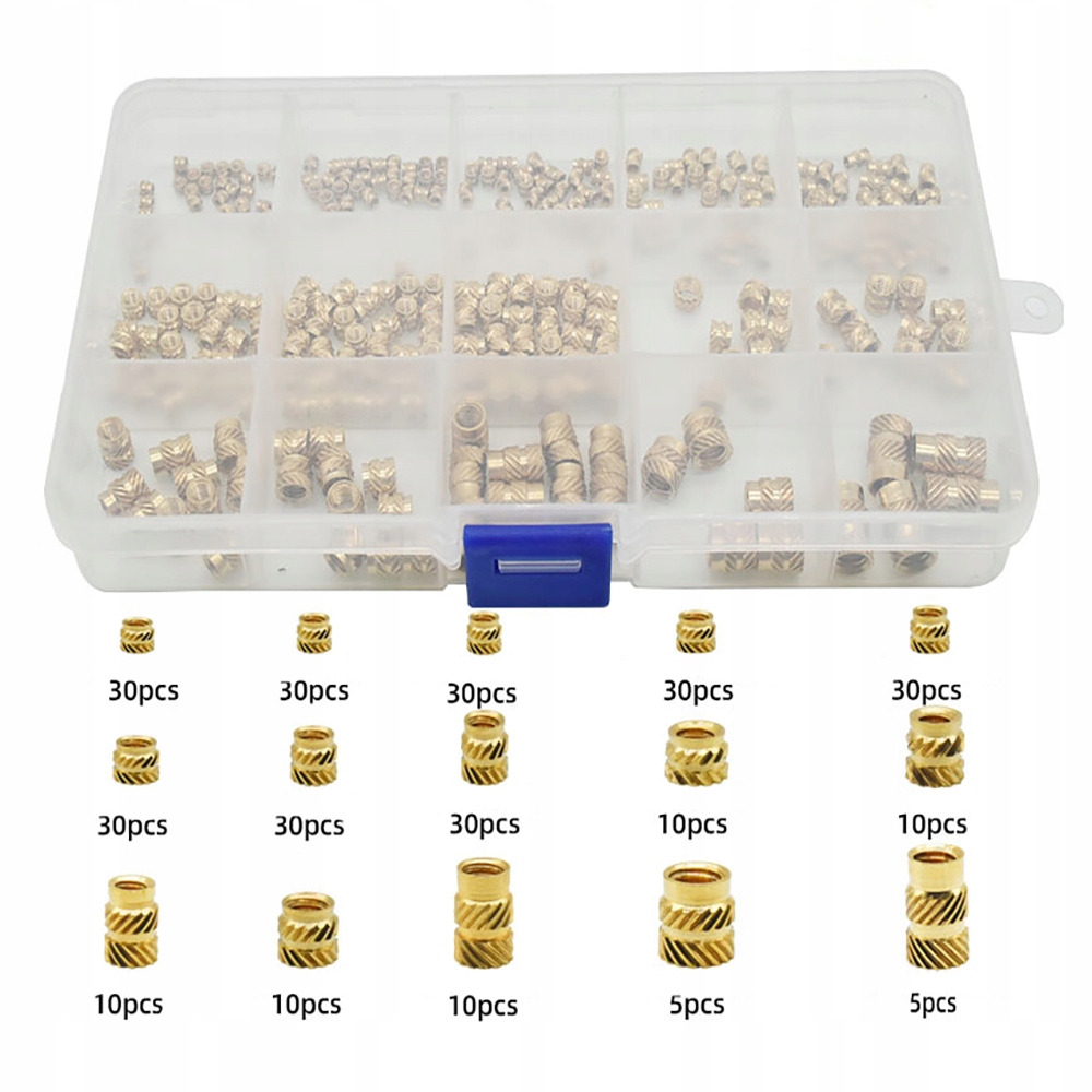①300 sztuk gwintów M2 M2.5 M3 M4 M5 M6 nakrętki gwintowane mosiężne tuleje gwintowane gwint wewnętrzny nakrętki radełkowane z pudełkiem do sortowania części z tworzywa sztucznego w technologii