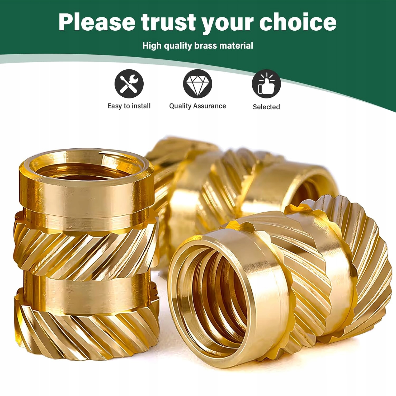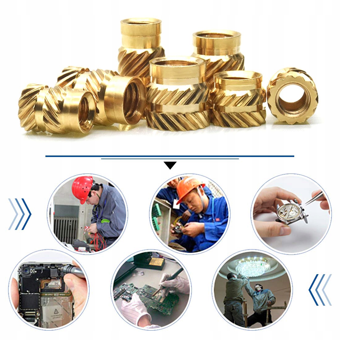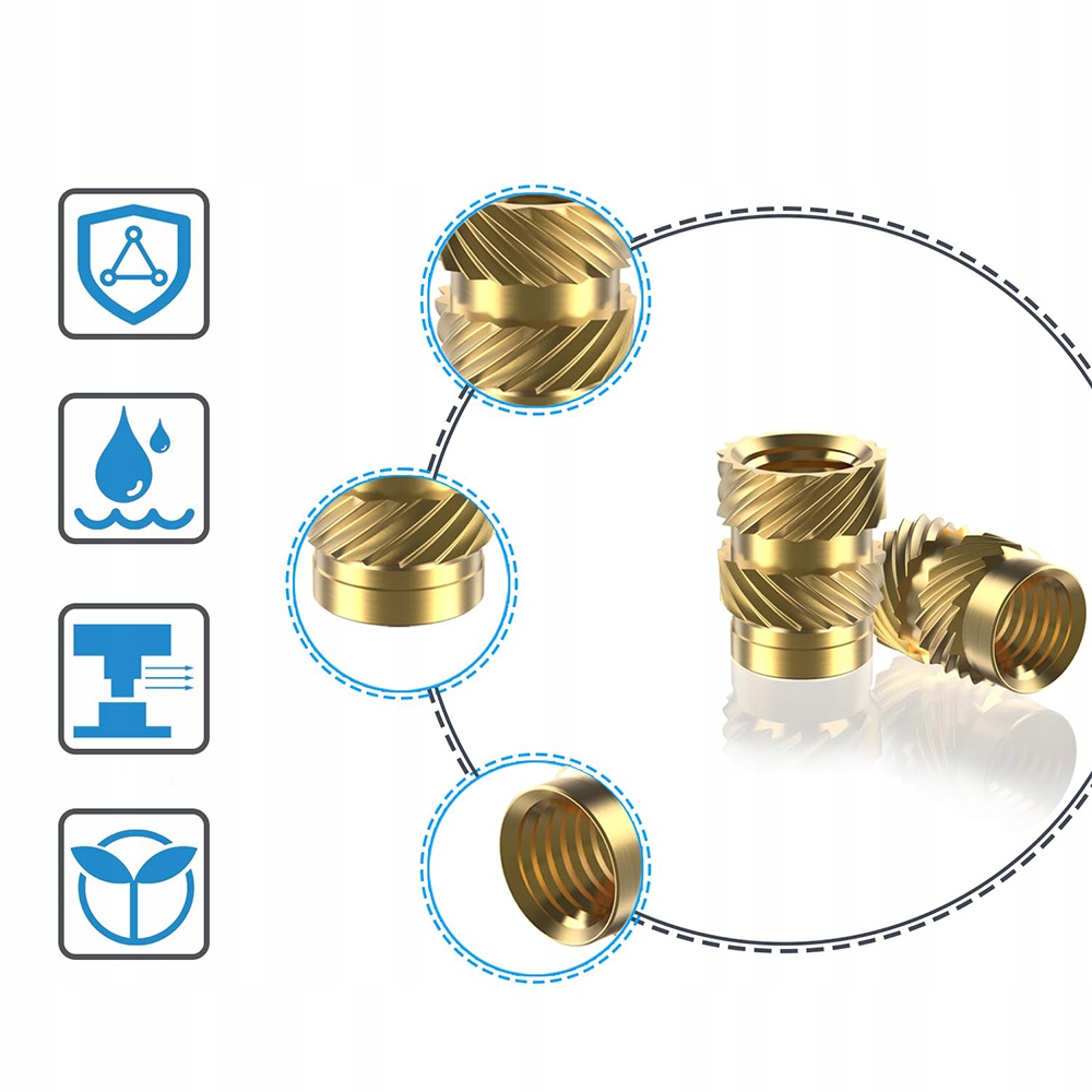 ②Trwały materiał: Nakrętki są wykone z wysokiej jakości mosiądzu, odpornego kwasy i zasady, są odporne utlenianie i doskole wykończone, aby zapewnić długą żywotność i łatwe wciskanie.