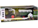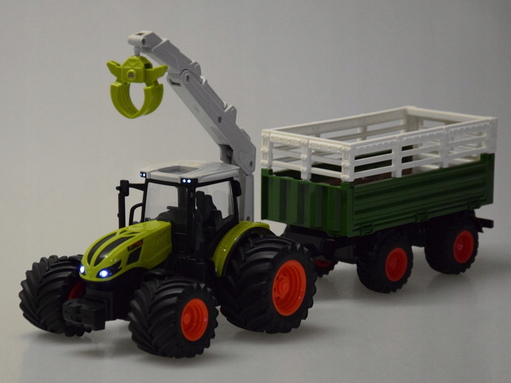 Zdalnie sterowany ciągnik rolniczy z chwytakiem do drewna to maszyna, która przyda się w każdym dobrze wyposażonym gospodarstwie! Traktor sprawdzi się podczas zabaw w farmę, a pojemna przyczepa przyda się do przewożenia bali drewna, czy figurek zwierząt. Zestaw zapewni wiele godzin intersującej, rozwijającej wyobraźnię zabawy!