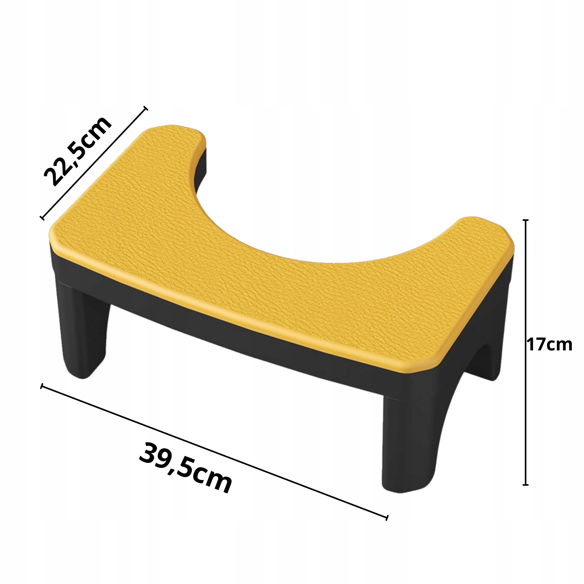 Wykonany z solidnego, odpornego na wilgoć tworzywa sztucznego, zapewnia stabilność i bezpieczeństwo użytkowania. Antypoślizgowa powierzchnia zapobiega ślizganiu się stóp, a odpowiednia wysokość (ok. 17 cm) gwarantuje idealne uniesienie kolan względem bioder.