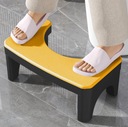 Podnóżek ma specjalnie wyprofilowany kształt w formie litery „U”, który idealnie dopasowuje się do podstawy toalety. Dzięki temu można go wygodnie wsunąć pod muszlę, nie zajmując zbędnego miejsca w łazience. Pasuje do większości standardowych toalet.