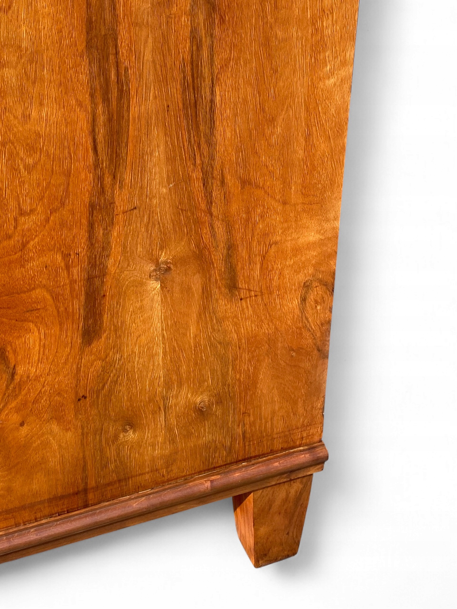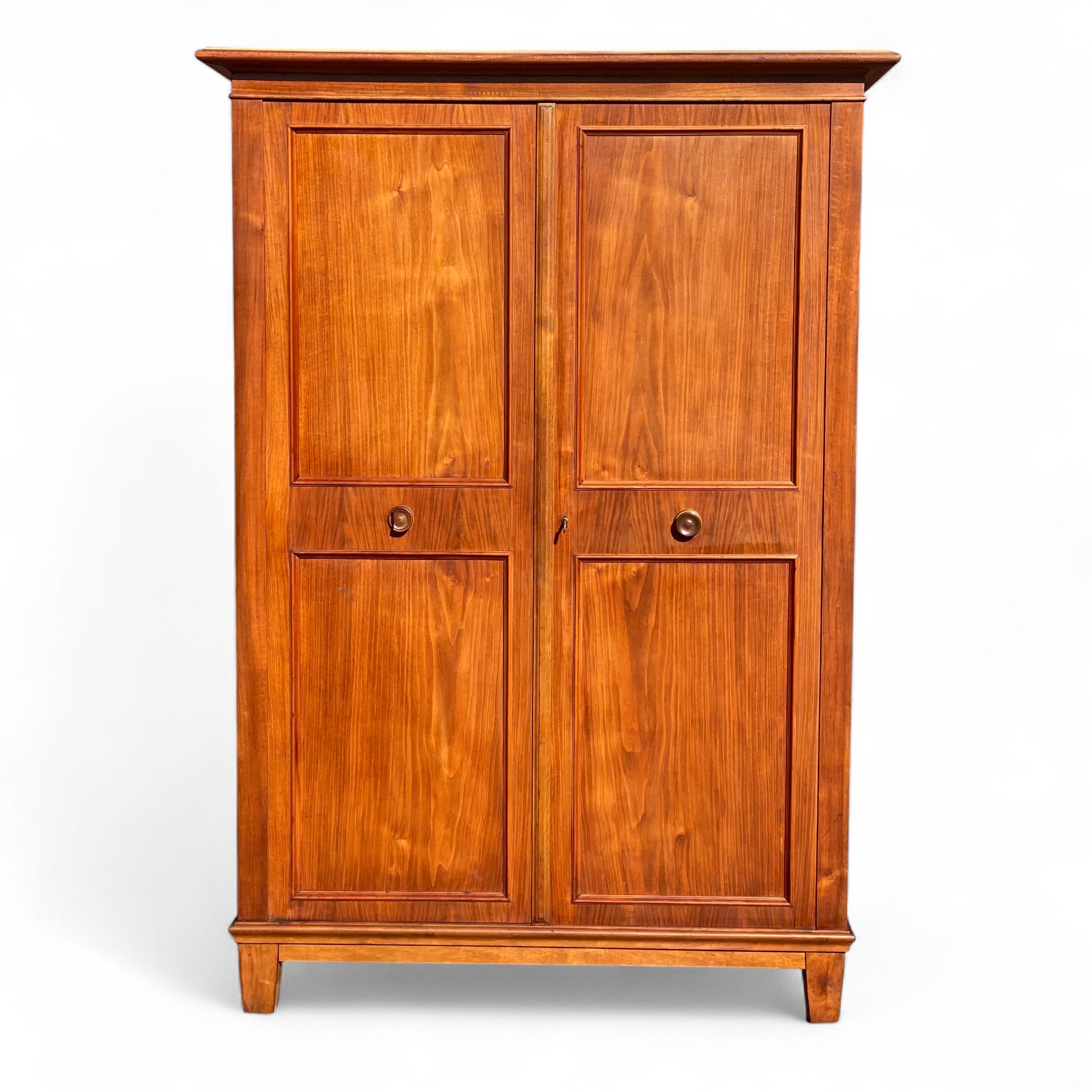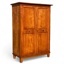 Stylowa szafa dwudrzwiowa osadzona na niskich zwężanych nogach.