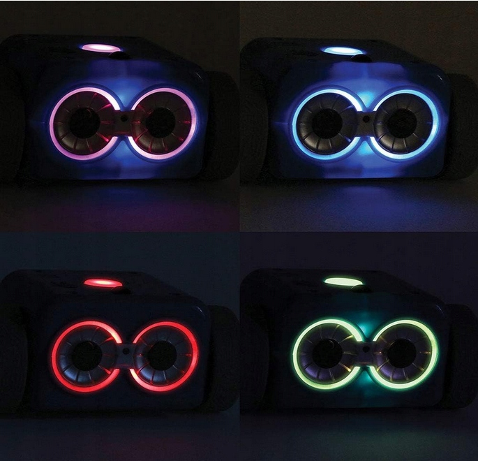 Oczy Botley 2.0 mogą świecić, a kolor oczu można zmienić nawet przez dziecko Wyłącz światła i obserwuj, jak Botley wykonuje grę świateł i tańczy w rytmie.