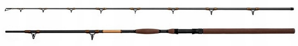 SYMBOL CAT Bronze ma ciężar wyrzutu do 500 g, a dzięki półparabolicznej akcji poradzi sobie nawet z mniejszymi rybami. Oferujemy tą wędkę w trzech różnych długościach, w zależności od preferowanego stylu wędkowania. Można jej używać również do połowów morskich, szukać dorszy lub niektórych zwinnych gatunków tropikalnych. Wędka ta nie należy do kategorii „sztywnych” wędek, ma bardzo przyjemną pracę szczytówki, która poradzi sobie ze zwinnym drapieżnikiem. Mocny blank 24T o ulepszonej konstrukcji z elementami w stylu brązu ma solidne przelotki dla lepszego wyważenia. Poszczególne części mają wzmocnienie na połączeniu . Nad uchwytem kołowrotka znajduje się zwężona rękojeść z pianki EVA, zaprojektowana do holu ryby z większą siłą dźwigni. Rękojeść typu full grip z pianką EVA, która jest łatwa w utrzymaniu i czyszczeniu. Solidny uchwyt kołowrotka DPS pomieści nawet największy kołowrotek sumowy. SYMBOL CAT Bronze udowadnia, że dobra wędka sumowa może być zarówno wydajna, jak i niedroga.