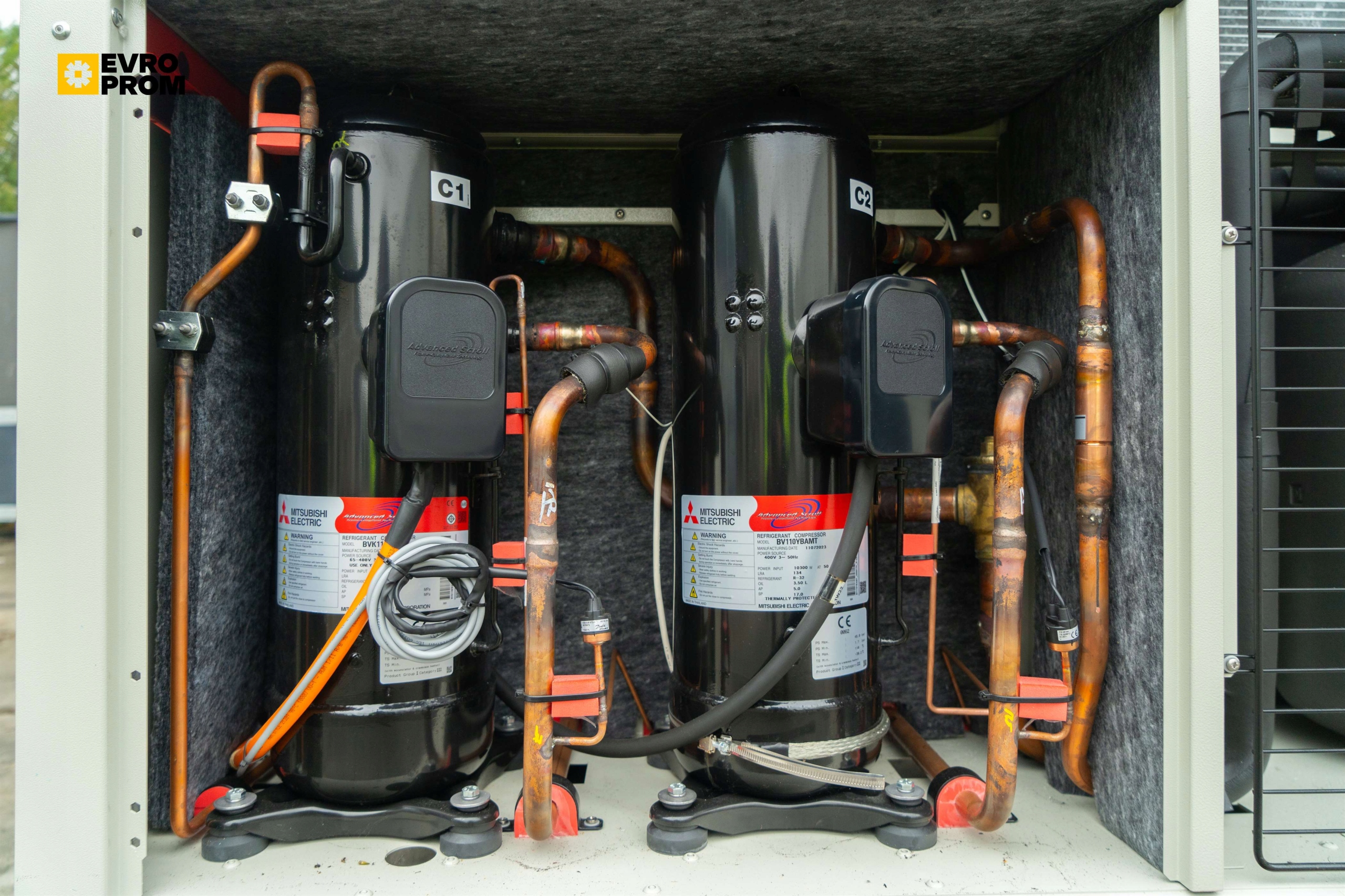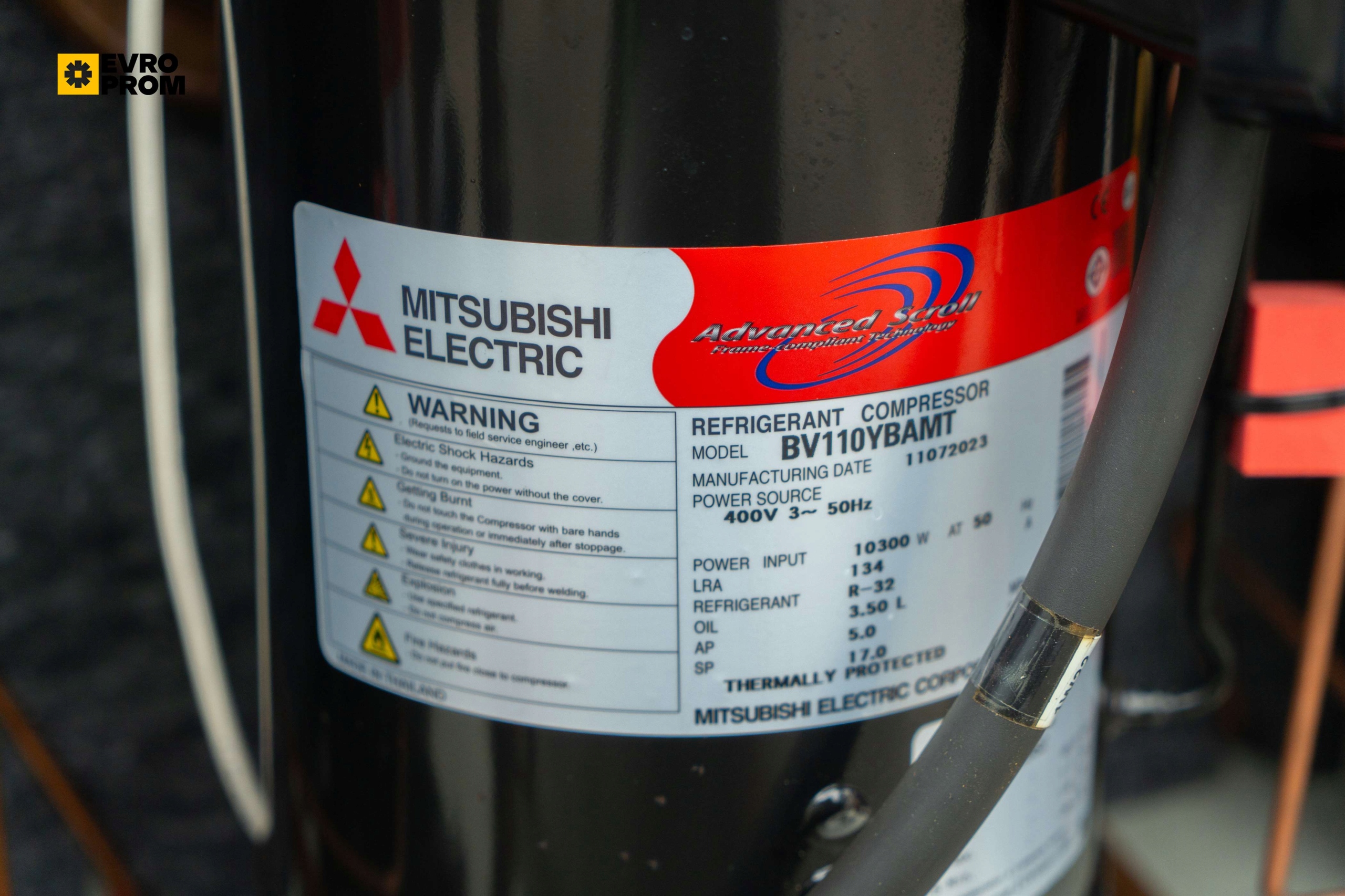 Compressors: 1 pcs. Mitsubishi BVK110FBAMT (scroll, inverter) + 1 pcs. Mitsubishi BV110YBAMT (scroll, inverter)