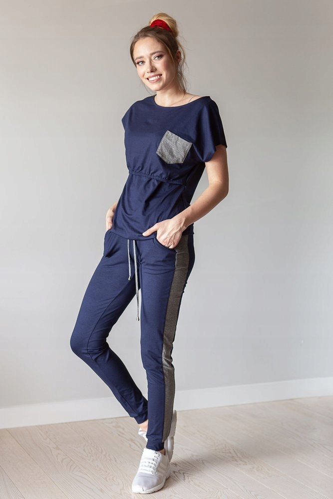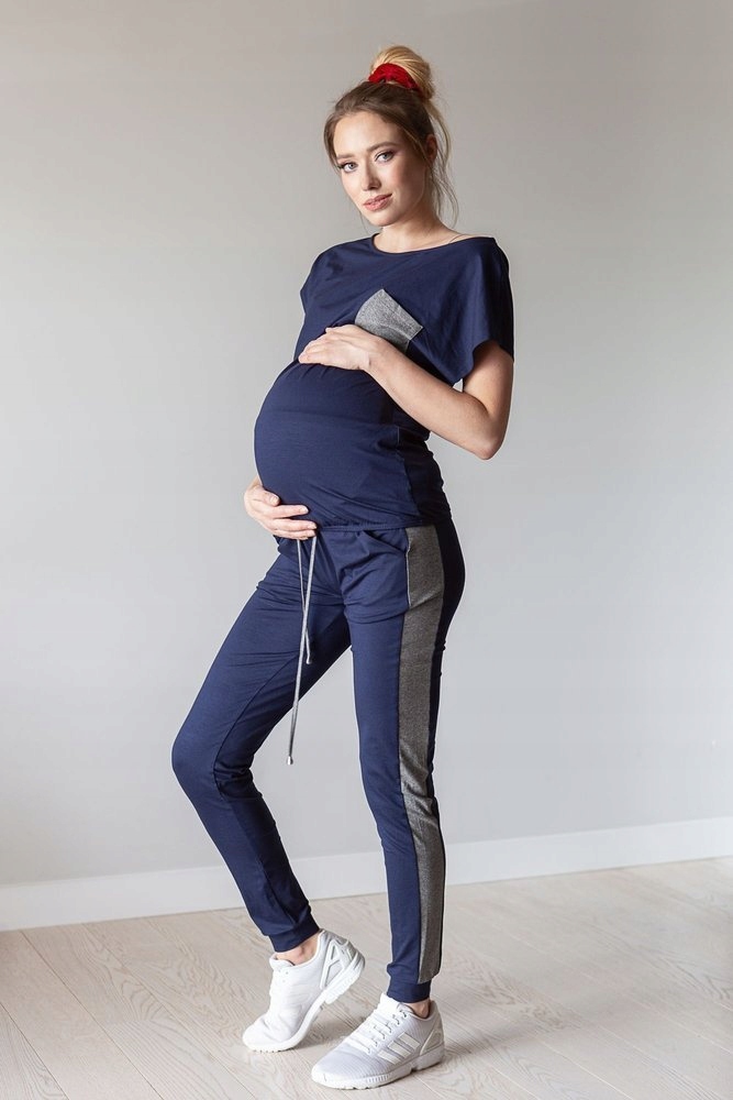.Komplet dresowy z krótkim rękawem wykonany z wysokiej jakości dzianiny.Idealny zestaw dla przyszłych i obecnych mam. Klasyczny a jednak stworzony specjalnie z myślą o mamach komplet dresowy to połączenie wygodnych spodni z wysokim pasem z bluzą, która dzięki odciętej górze pozwoli wygodnie nakarmić malucha.Chcesz poczuć się modnie i stylowo? Jest to komplet dla Ciebie.