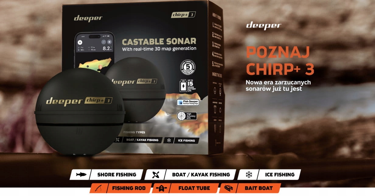 Nowa echosonda Deeper CHIRP+ 3 z osobistą batymetrią 3D oraz dokładniejszym GPS. Skanuj łowisko zarówno z brzegu jak i z łodzi!