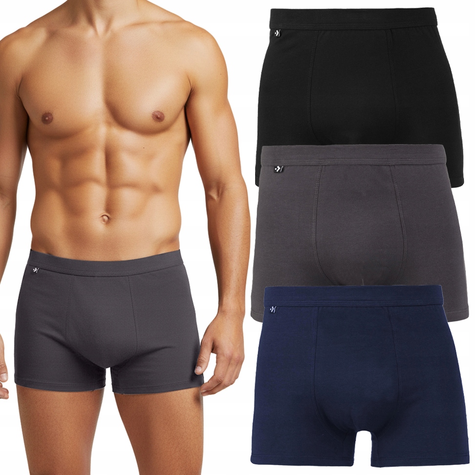 ☑️ Trzypak sportowych, wygodnych bokserek w kolorach: czarnym, granatowym, szarym.