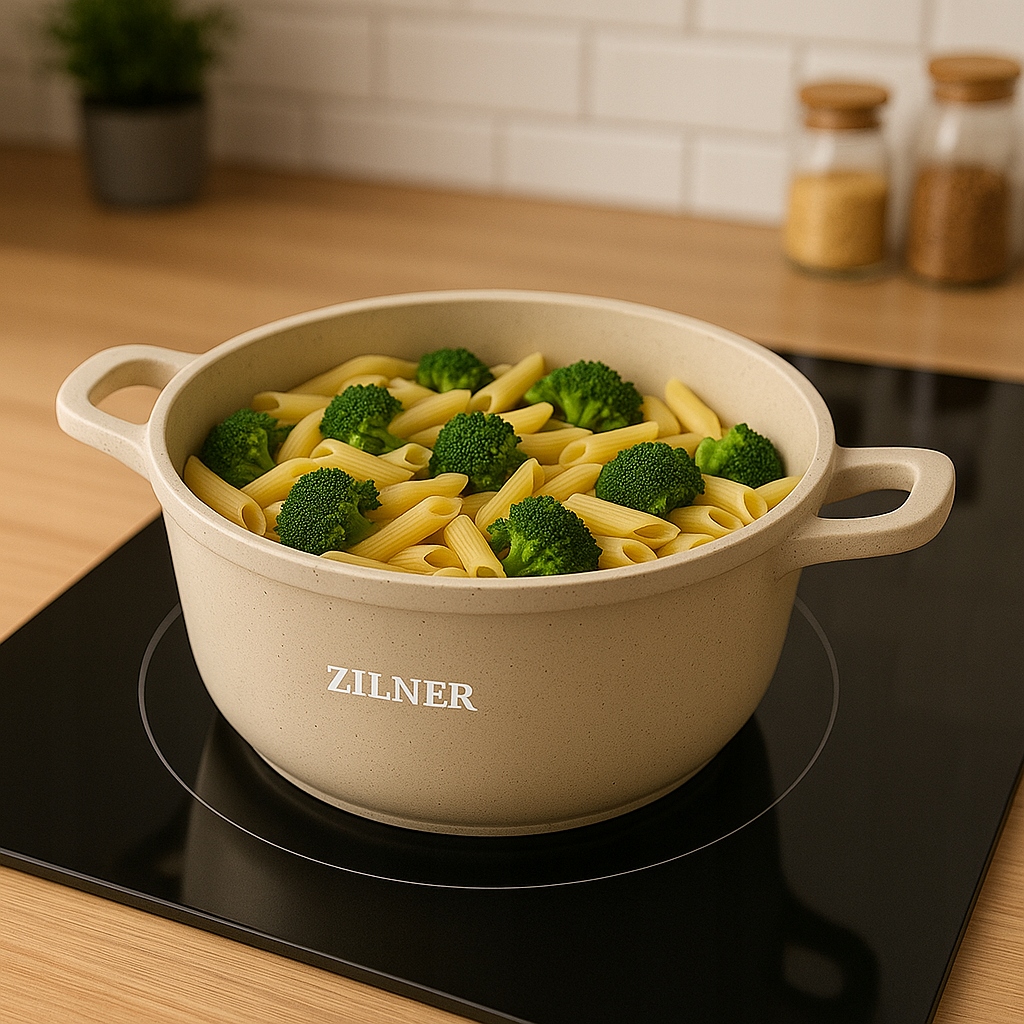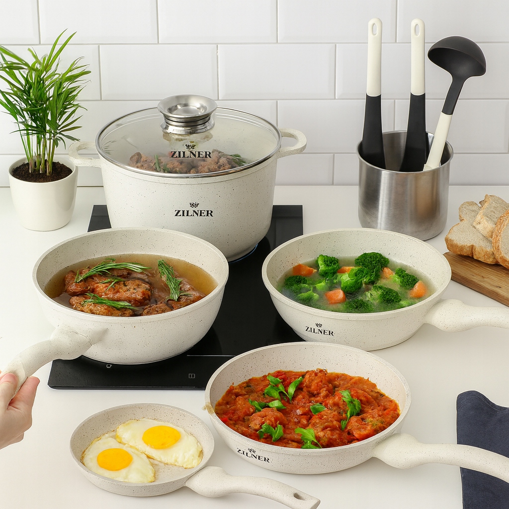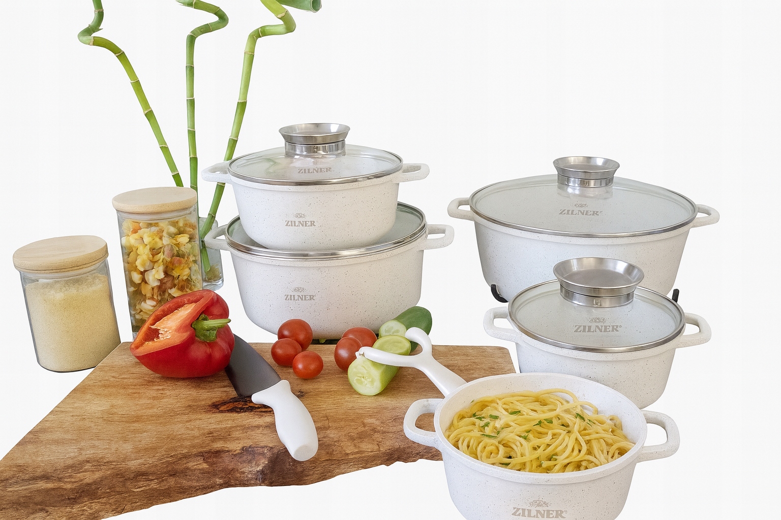 Odkryj najwyższą jakość gotowania z ZILNER ZL-8573 – eleganckim zestawem garnków wykonanym z powłoką ceramiczno-marmurową, która gwarantuje trwałość, równomierne rozprowadzanie ciepła i wyjątkowy komfort użytkowania.