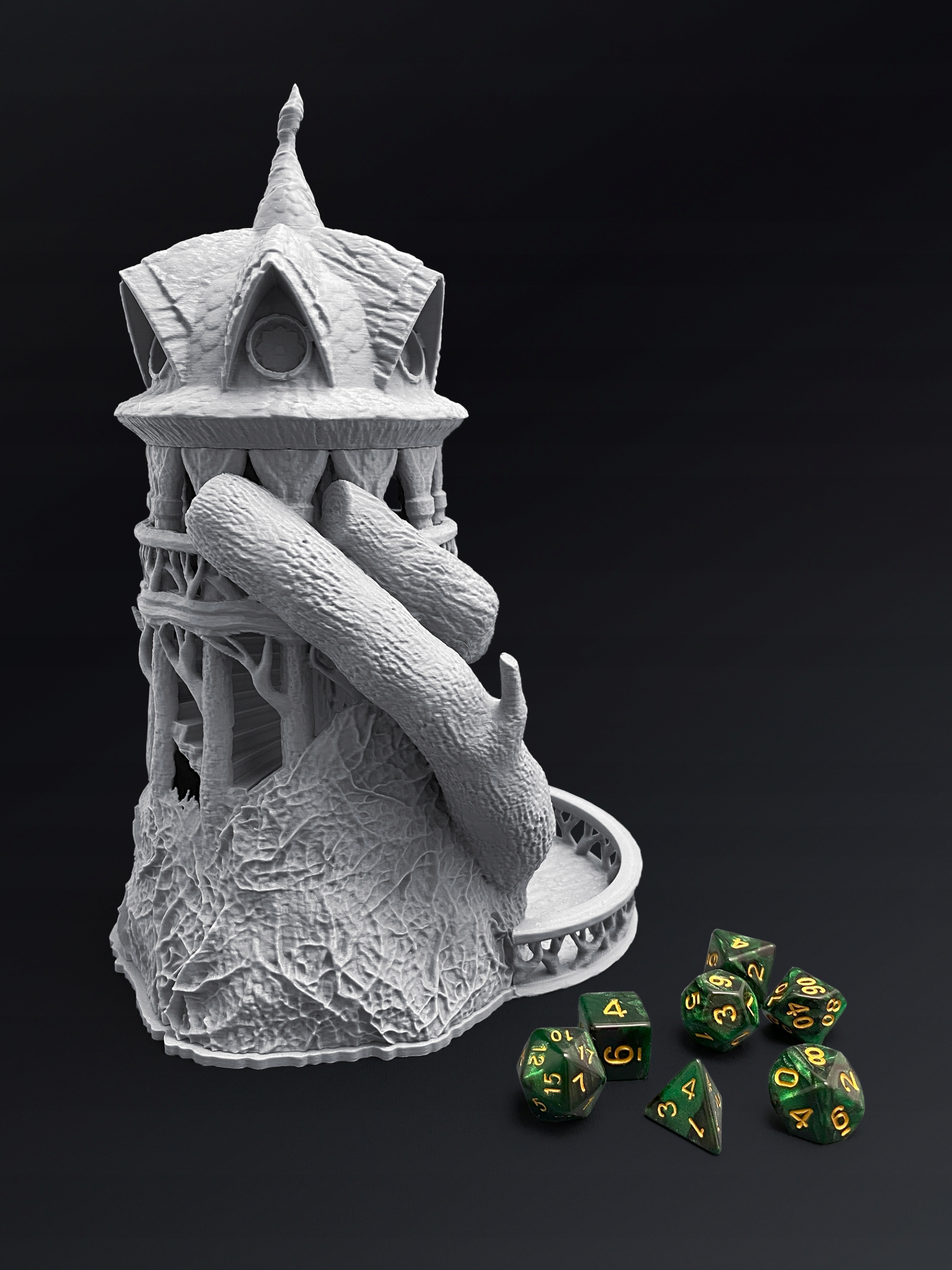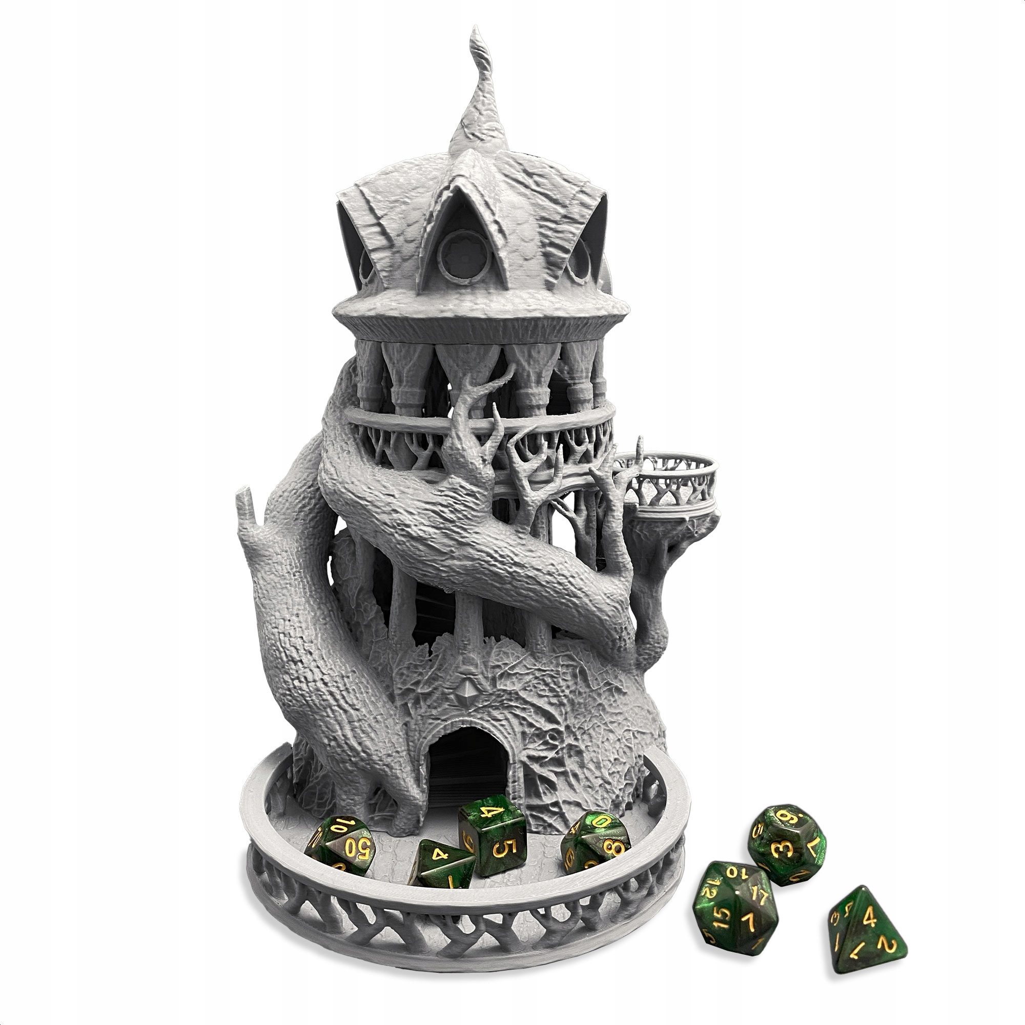Model DRUID Dice Tower to klimatyczna wieża inspirowana naturą i magią druidów – idealna do gier takich jak Dungeons & Dragons, Pathfinder czy inne systemy RPG.