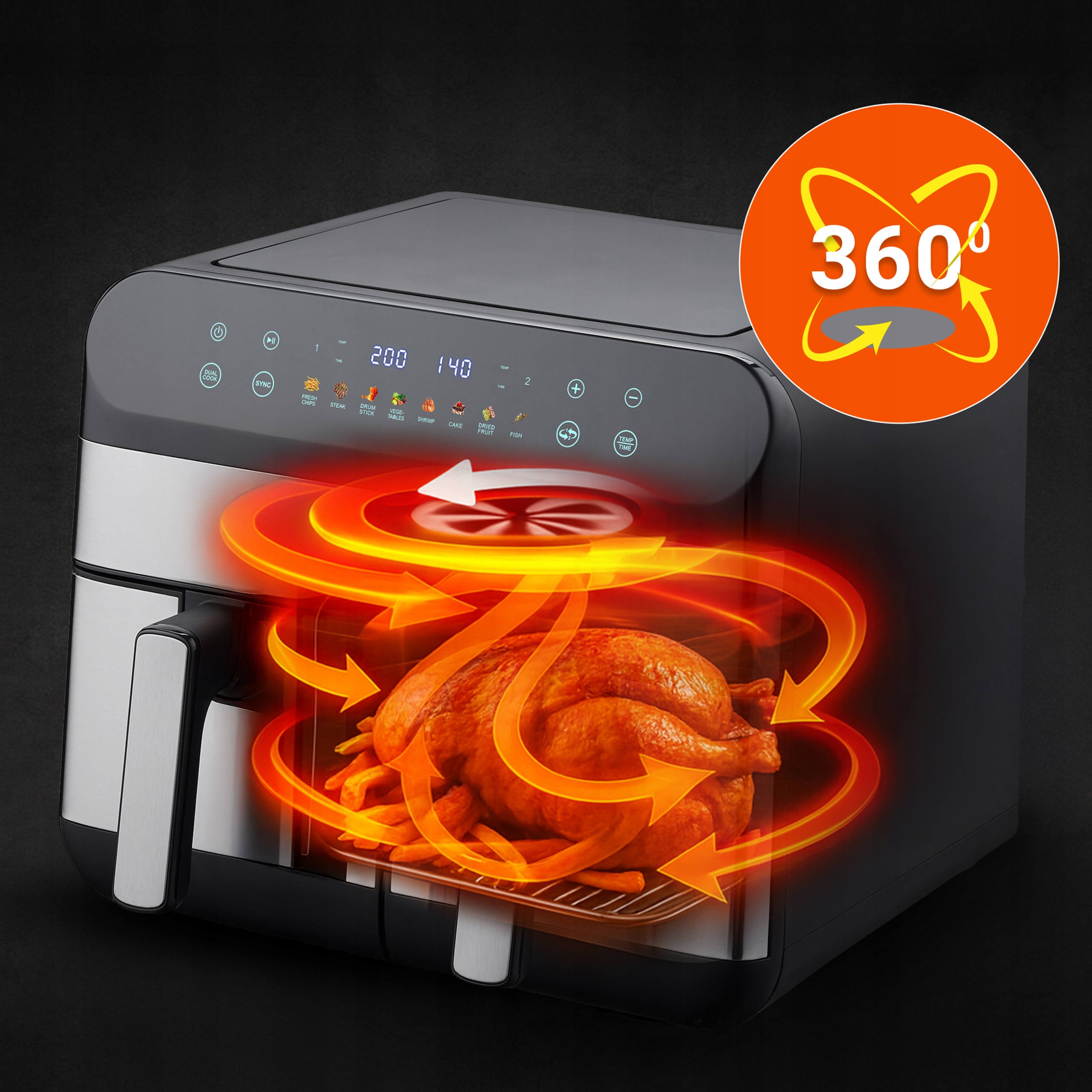 Odkryj niezastąpiony smak i przyjemność zdrowego smażenia dzięki nowej podwójnej frytkownicy beztłuszczowej XXL! Niezastąpiony sprzęt dla każdego miłośnika smacznych, ale przede wszystkim zdrowych potraw.
