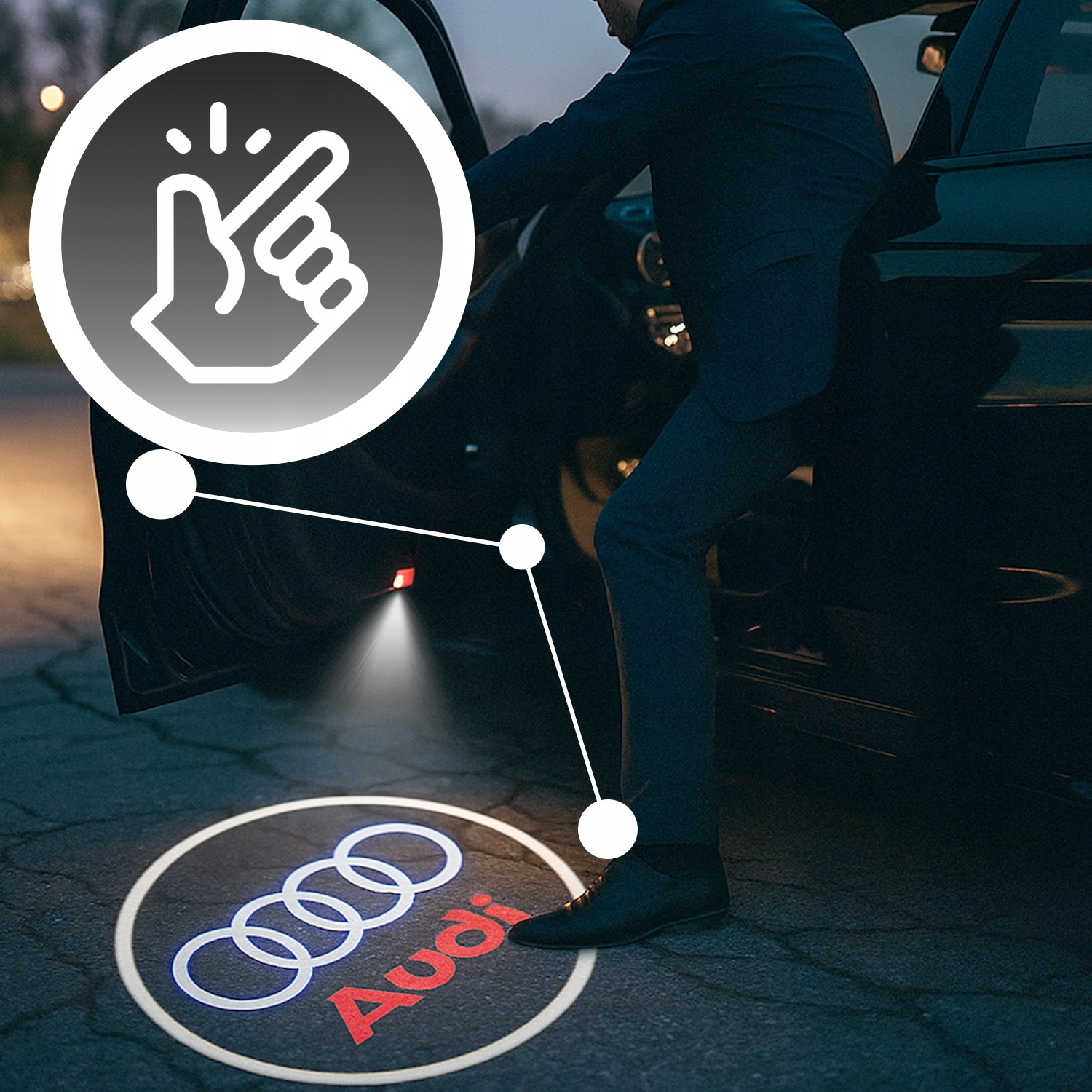 Po otwarciu drzwi projektor wyświetla wyraźne logo marki na ziemi, tworząc efektowny i ostry obraz 3D. To doskonałe rozwiązanie dla osób, które chcą dodać swojemu samochodowi oryginalnego akcentu wizualnego.