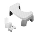 Podnóżek ma specjalnie wyprofilowany kształt w formie litery „U”, który idealnie dopasowuje się do podstawy toalety. Dzięki temu można go wygodnie wsunąć pod muszlę, nie zajmując zbędnego miejsca w łazience. Pasuje do większości standardowych toalet.