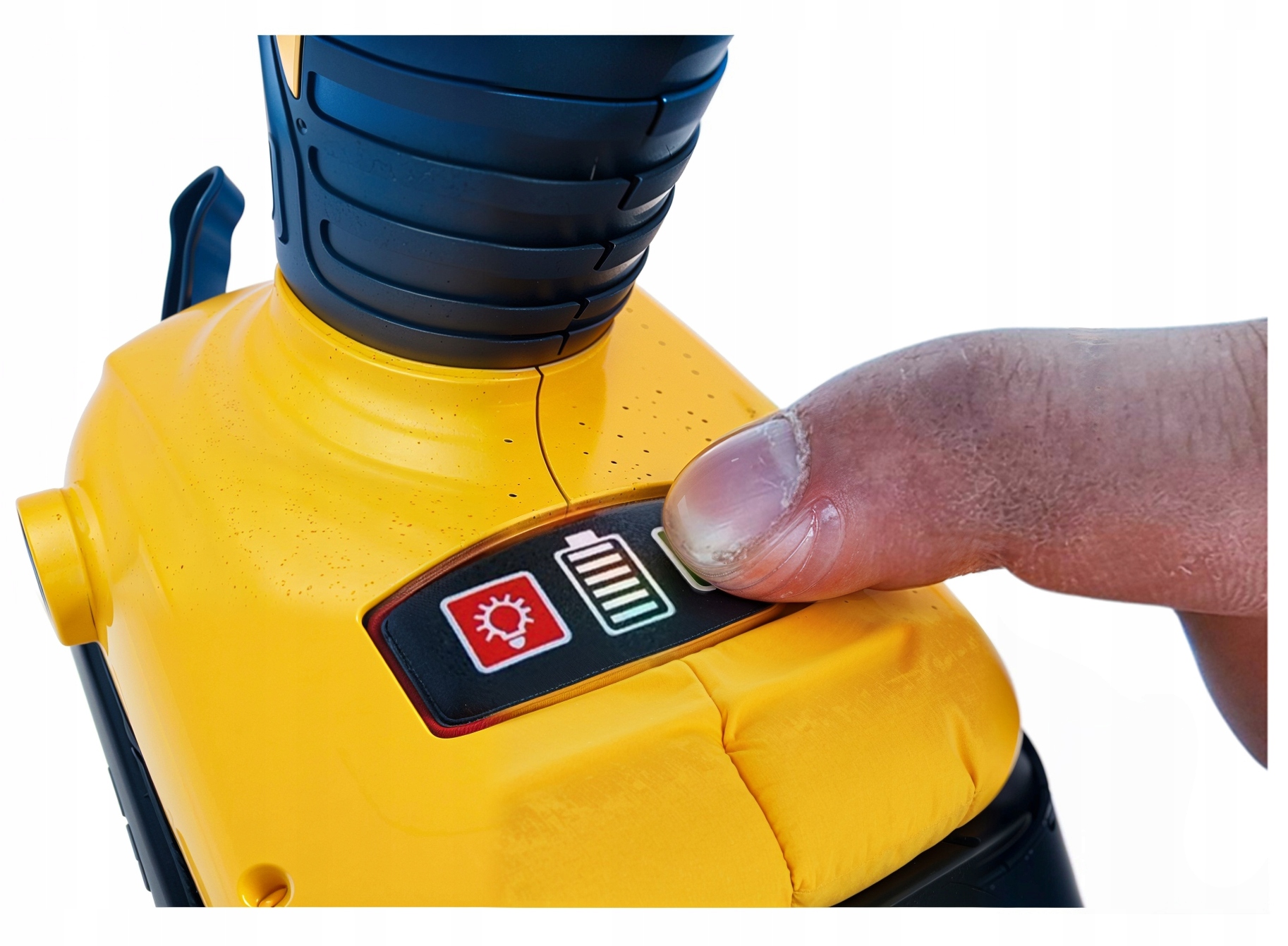 Uchwyt został pokryty miękkim materiałem przez co urządzenie pewnie leży w dłoni i jest wygodne w użytkowaniu. Ponadto komfort pracy zwiększa niewielka waga klucza 1,45kg z zamontowanym akumulatorem.