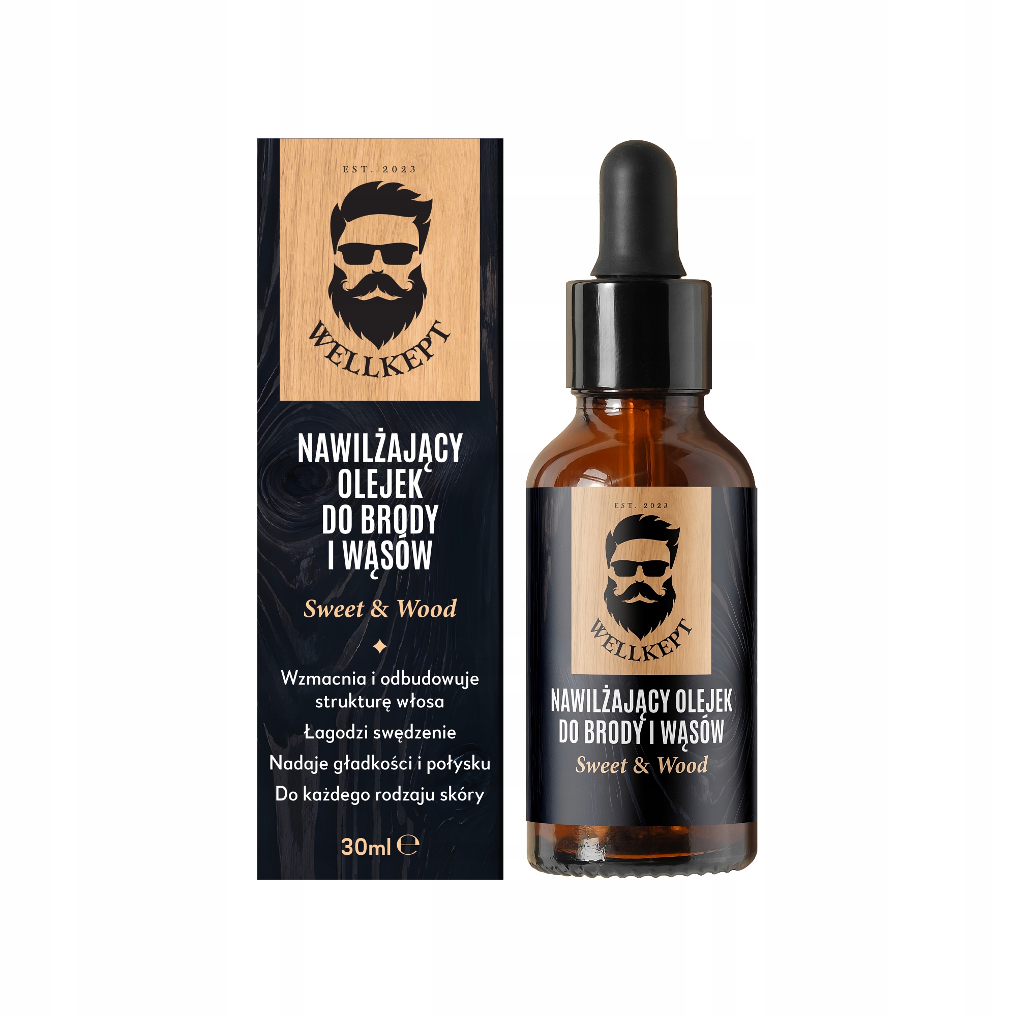 Olejek do brody Wellkept Sweet & Wood nie tylko pielęgnuje zarost, lecz także odżywia skórę pod nim.