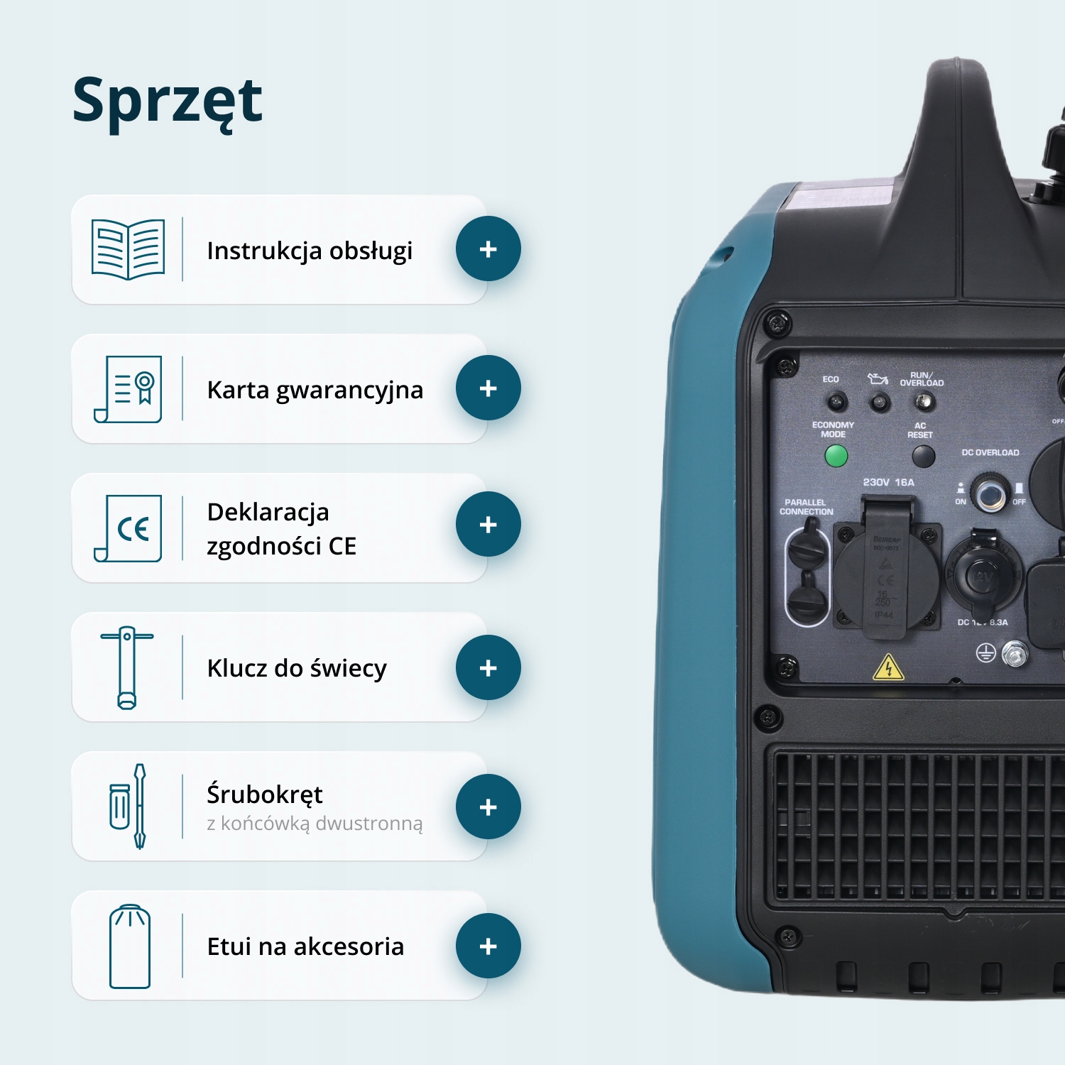 Możliwość podłączenia dwóch generatorów równolegle za pomocą specjalnego urządzenia, aby uzyskać podwójną moc.