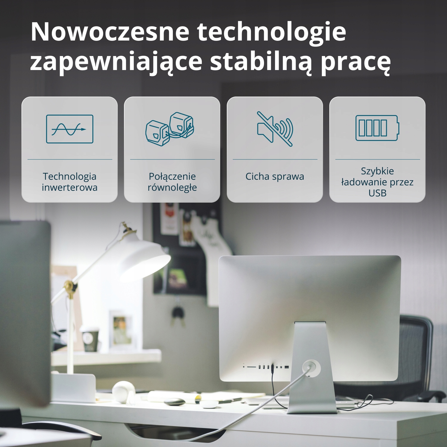 Zapewnia stabilne napięcie wyjściowe o czystej sinusoidzie, co gwarantuje bezpieczną i niezawodną pracę wrażliwej elektroniki, takiej jak sprzęt medyczny, komputery czy precyzyjne urządzenia