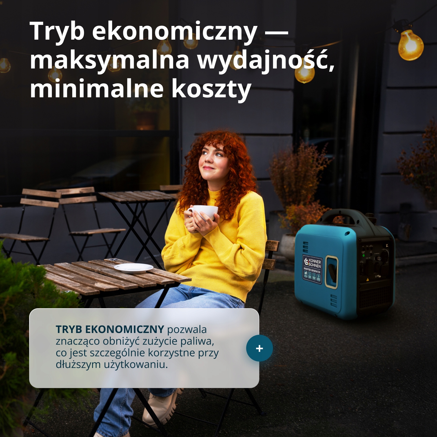 Generator inwertorowy KS 1900i S (2,0 kW) marki Könner & Söhnen zapewnia stabilne i bezpieczne zasilanie wrażliwej elektroniki, takiej jak sprzęt medyczny, komputery czy precyzyjne przyrządy. Kompaktowy i cichy, z obudową dźwiękochłonną i trybem ECONOMY MODE, idealnie sprawdza się w strefach mieszkalnych, podczas biwaków, wędkowania i podróży. Obsługuje połączenie równoległe, aby zwiększyć moc. Silnik spełnia normę EURO 5. Bezszczotkowy alternator z uzwojeniem w 100% miedzianym gwarantuje niezawodną pracę nawet przy dużym obciążeniu. Elegancki design i mobilność sprawiają, że model ten jest wygodnym źródłem energii rezerwowej.