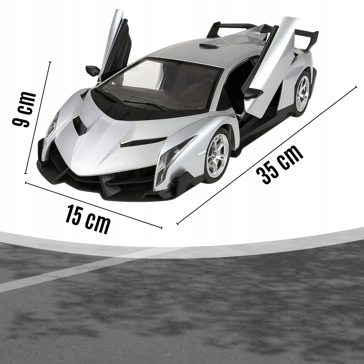➡️ DUŻY ROZMIAR 28 CM – samochód ma aż 28 cm długości, więc prezentuje się okazale i wygląda jak miniatura prawdziwego superauta.