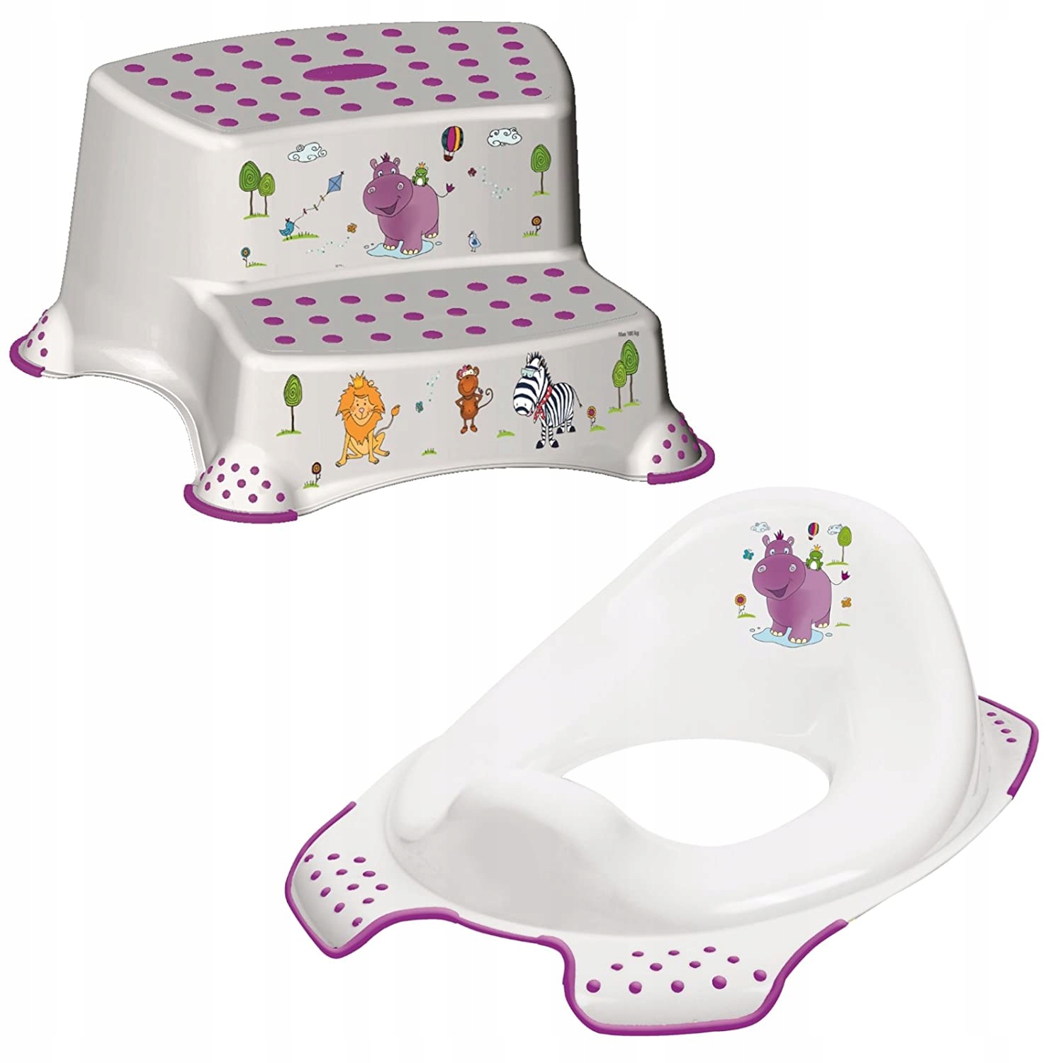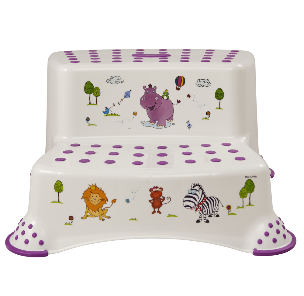 Dzięki dwóm niezależnym stopniom, produkt pomaga dziecku już od najmłodszych lat dosięgnąć toalety, umywalki, stołu itp.