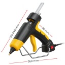 Ten profesjonalny pistolet do kleju na gorąco 120W to narzędzie o ekstremalnej mocy i błyskawicznym nagrzewaniu, idealne do trwałych i estetycznych łączeń. Umożliwia precyzyjną, manualną regulację dozowania kleju, co gwarantuje czystą i oszczędną pracę. Posiada podwójny system zabezpieczeń, trwałą metalową dyszę z dwiema wymiennymi końcówkami oraz ergonomiczny uchwyt, zapewniając najwyższy komfort i bezpieczeństwo nawet przy intensywnym majsterkowaniu.
