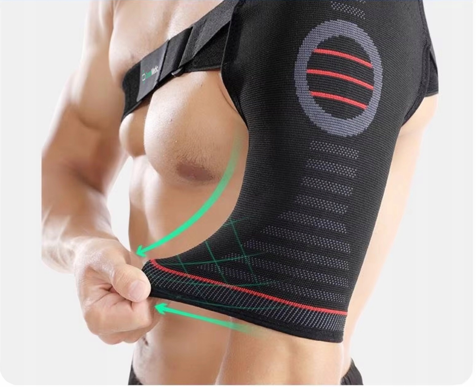 Dzięki regulowanym paskom z mocnymi rzepami, ortezę można idealnie dopasować do obwodu bicepsa i klatki piersiowej. Produkt jest uniwersalny – pasuje zarówno na lewy, jak i prawy bark.