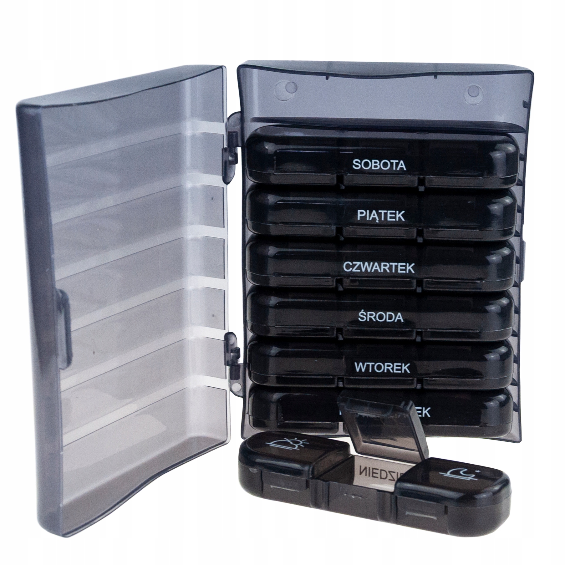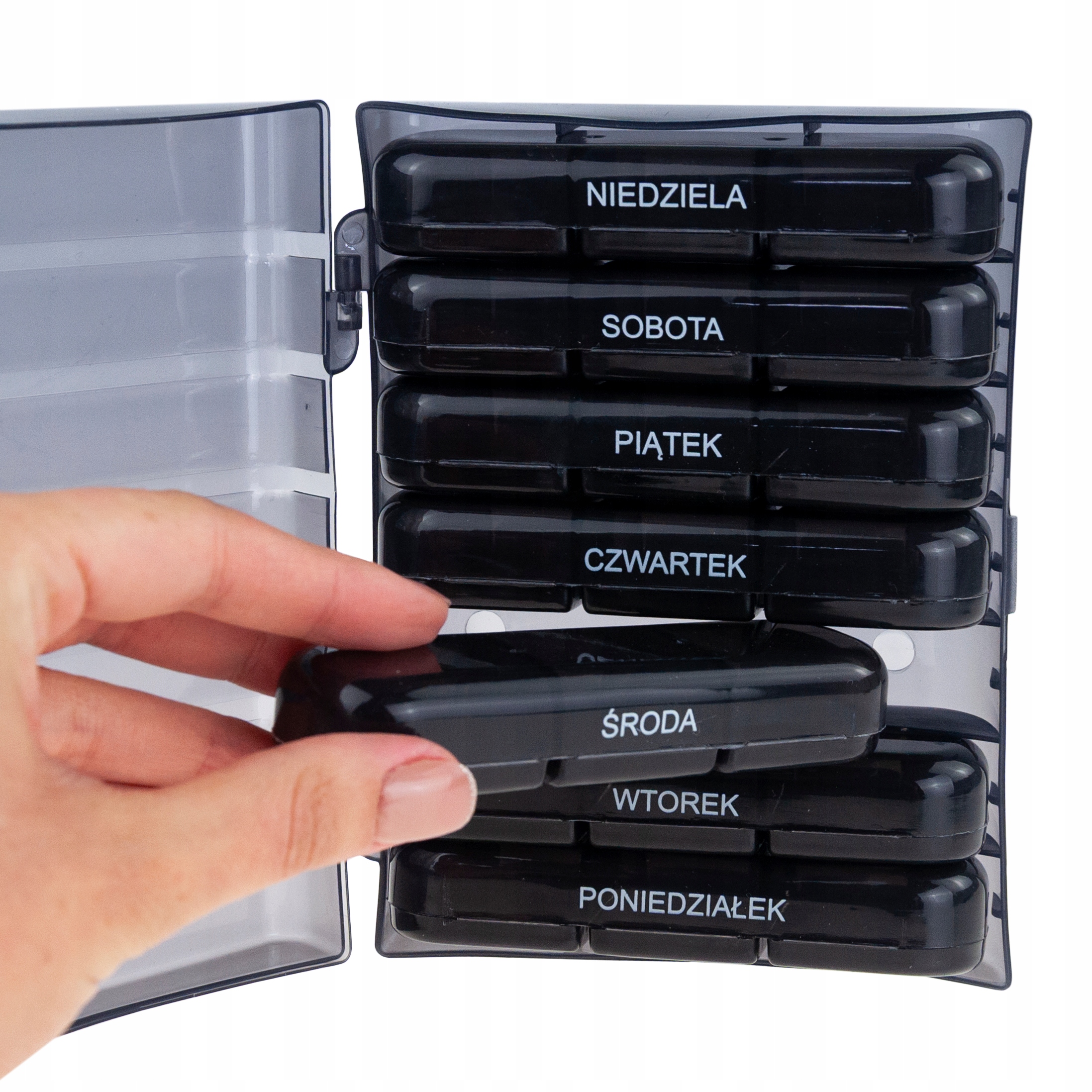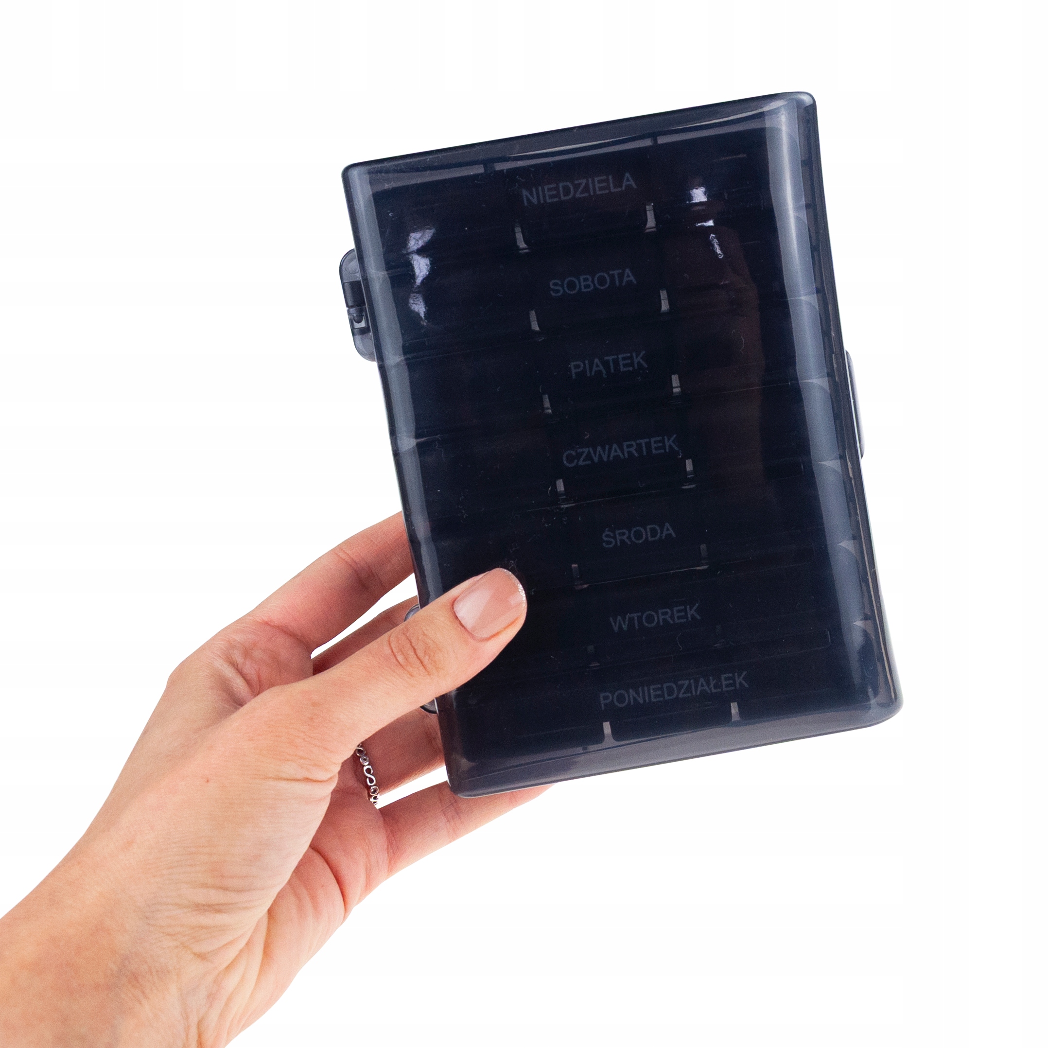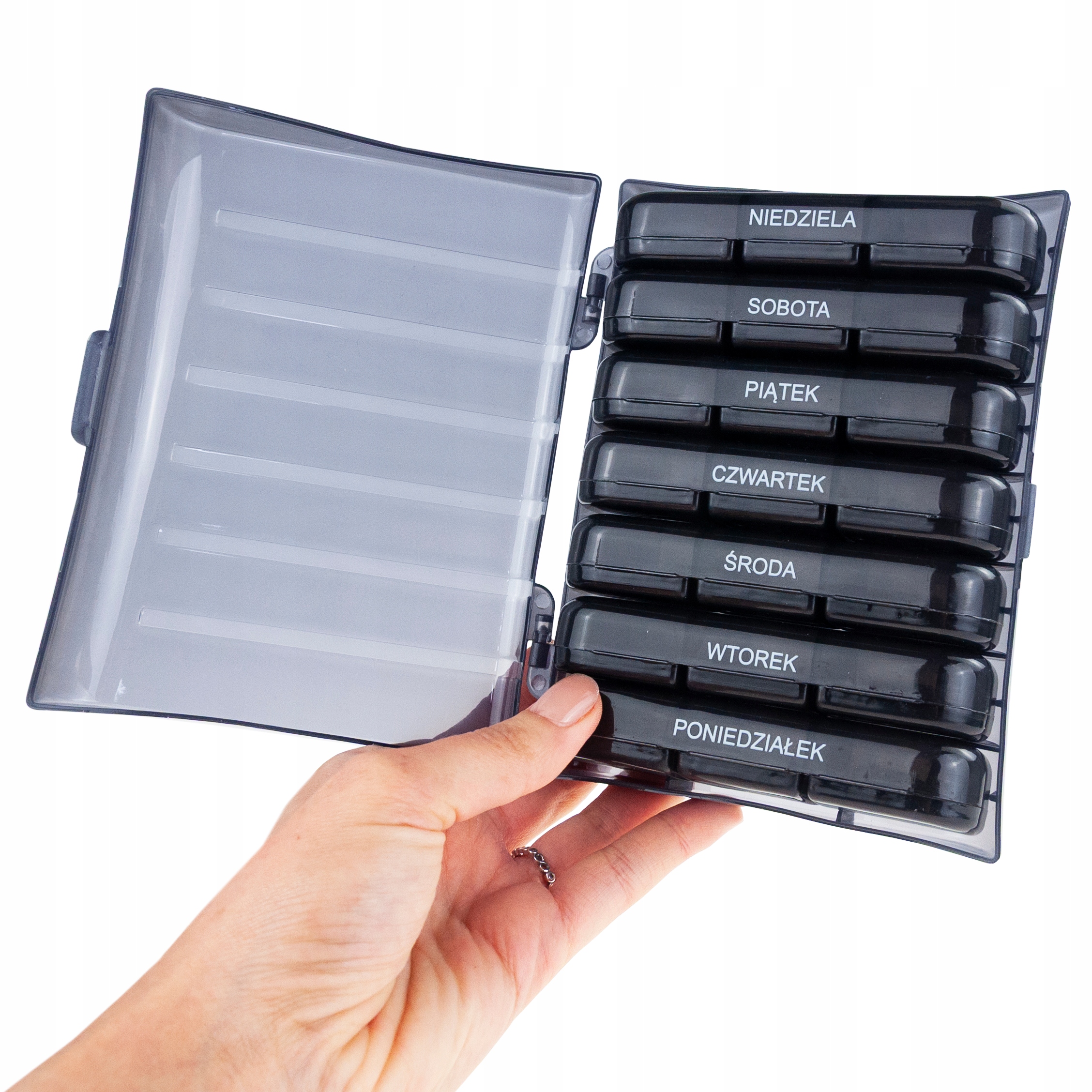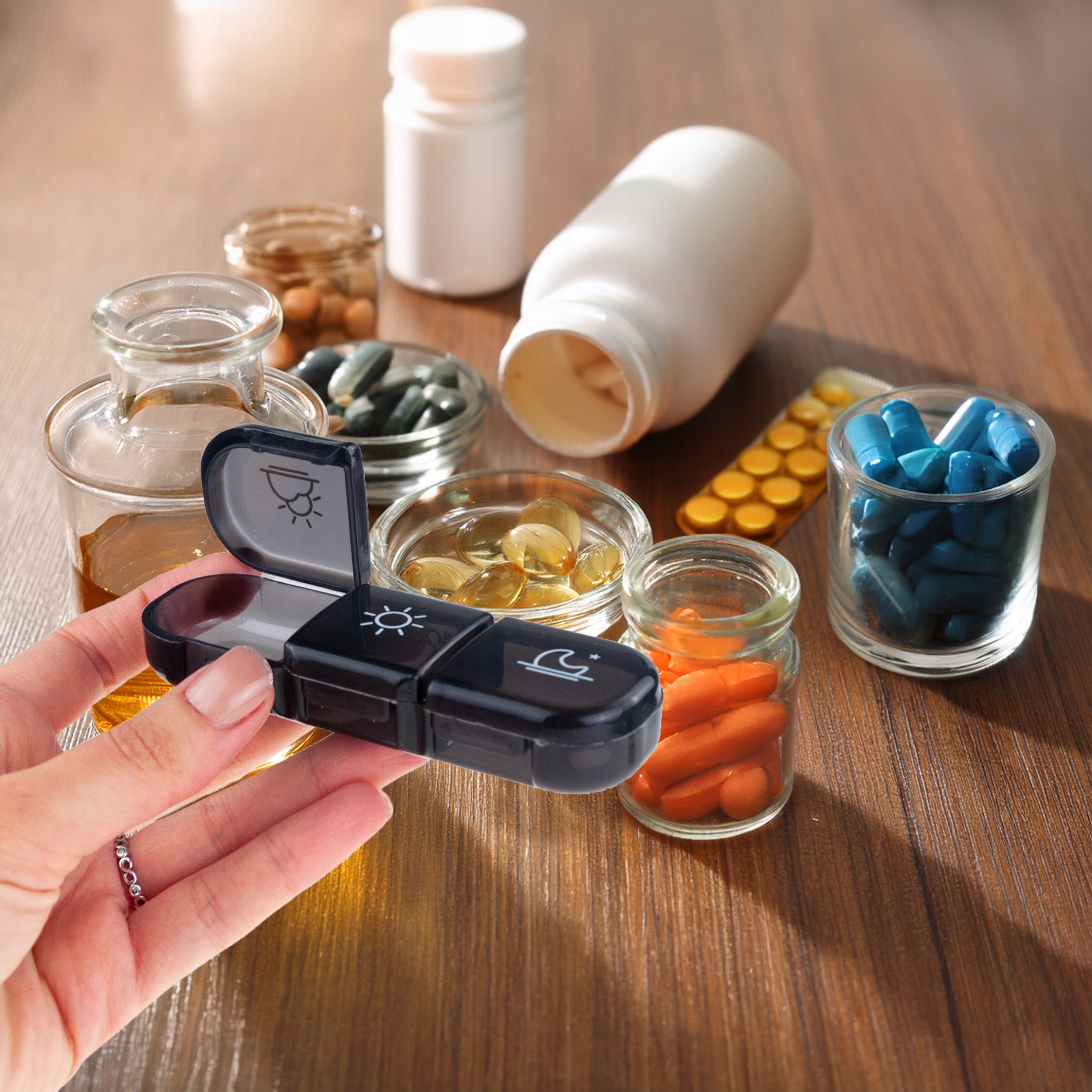 Ten pojemnik to idealne rozwiązanie dla osób dbających o regularność przyjmowania leków i suplementów – praktyczny, elegancki i bardzo wygodny w codziennym użytkowaniu.