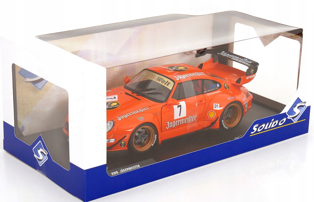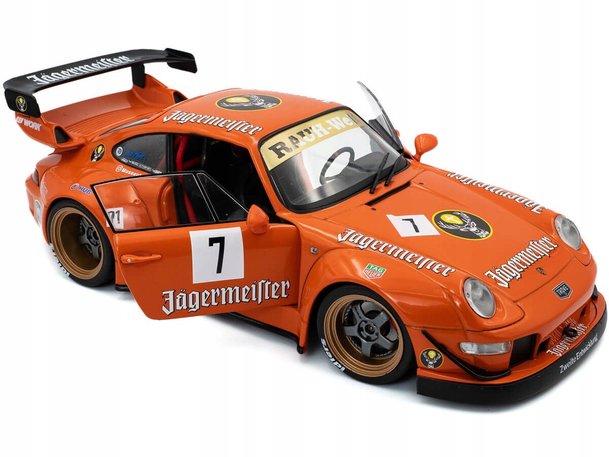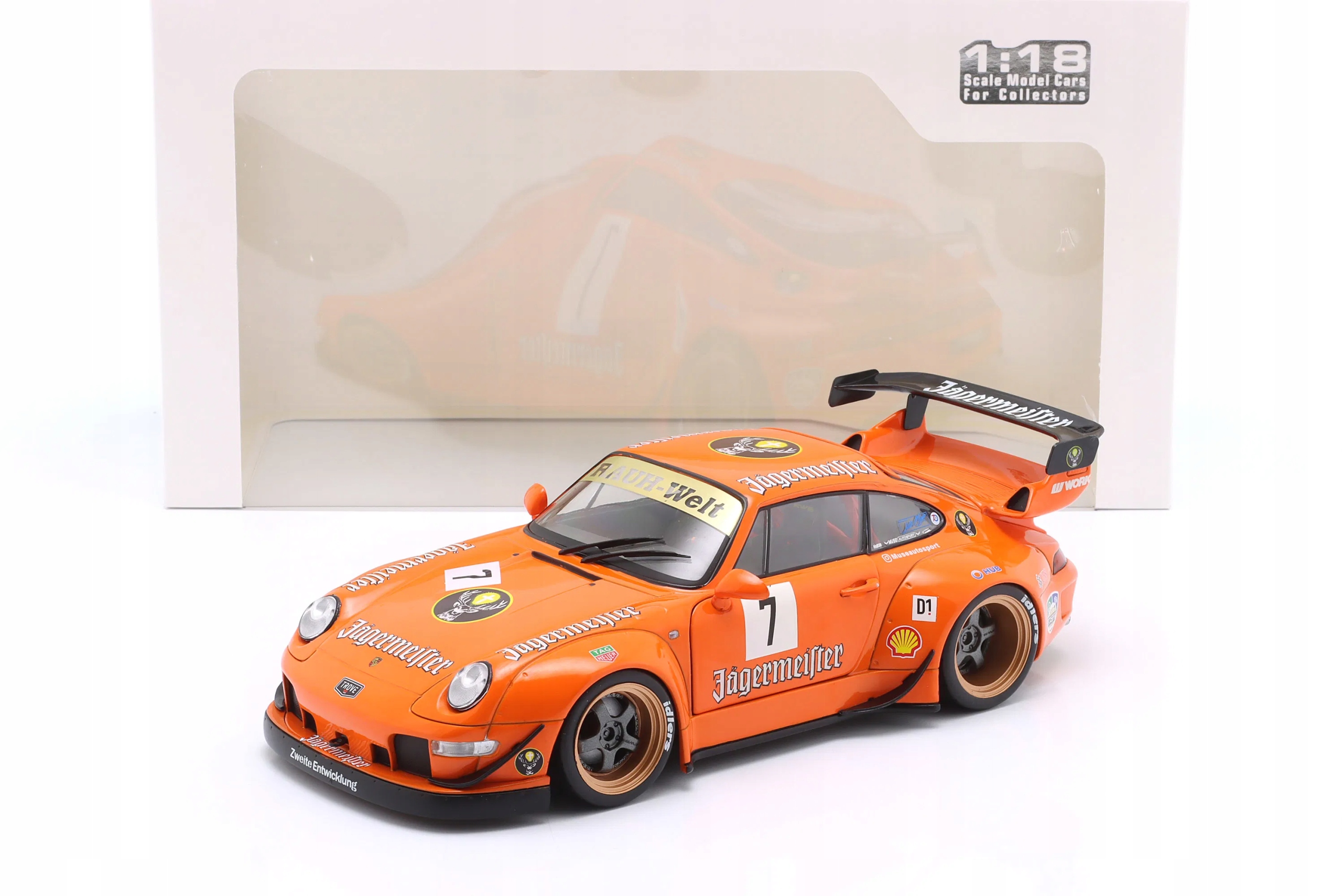 Kolekcjonerski metalowy model samochodu Porsche 911 (993) RWB Rauh-Welt RauhWelt Bodykit Body-Kit Jägermeister Jager #7 z 2020 roku w skali 1/18 wyprodukowany przez firmę Solido