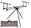 Delphin STATIC umożliwia regulację zmiennej wysokości oraz pochylenia pręta. Służą temu trzy teleskopowe nogi podstawy oraz centralny przegub, który umożliwia regulację nachylenia. Można ustawić równomierną wysokość (pręty są na równi z podłożem) w zakresie 65-90 cm, ale w przypadku ustawienia nachylenia można uzyskać wędziska do wysokości około 120 cm.